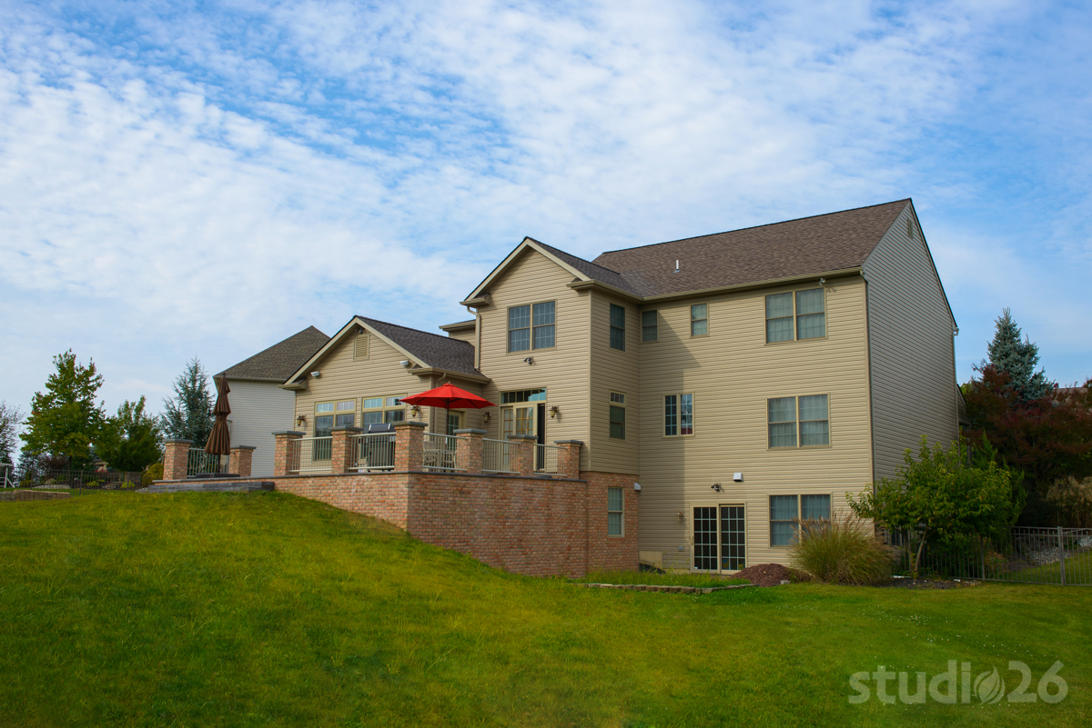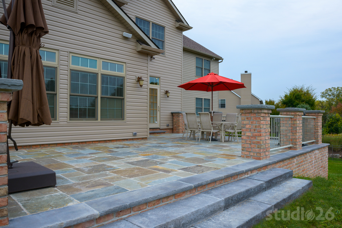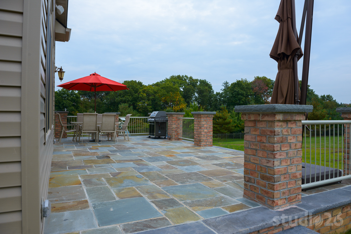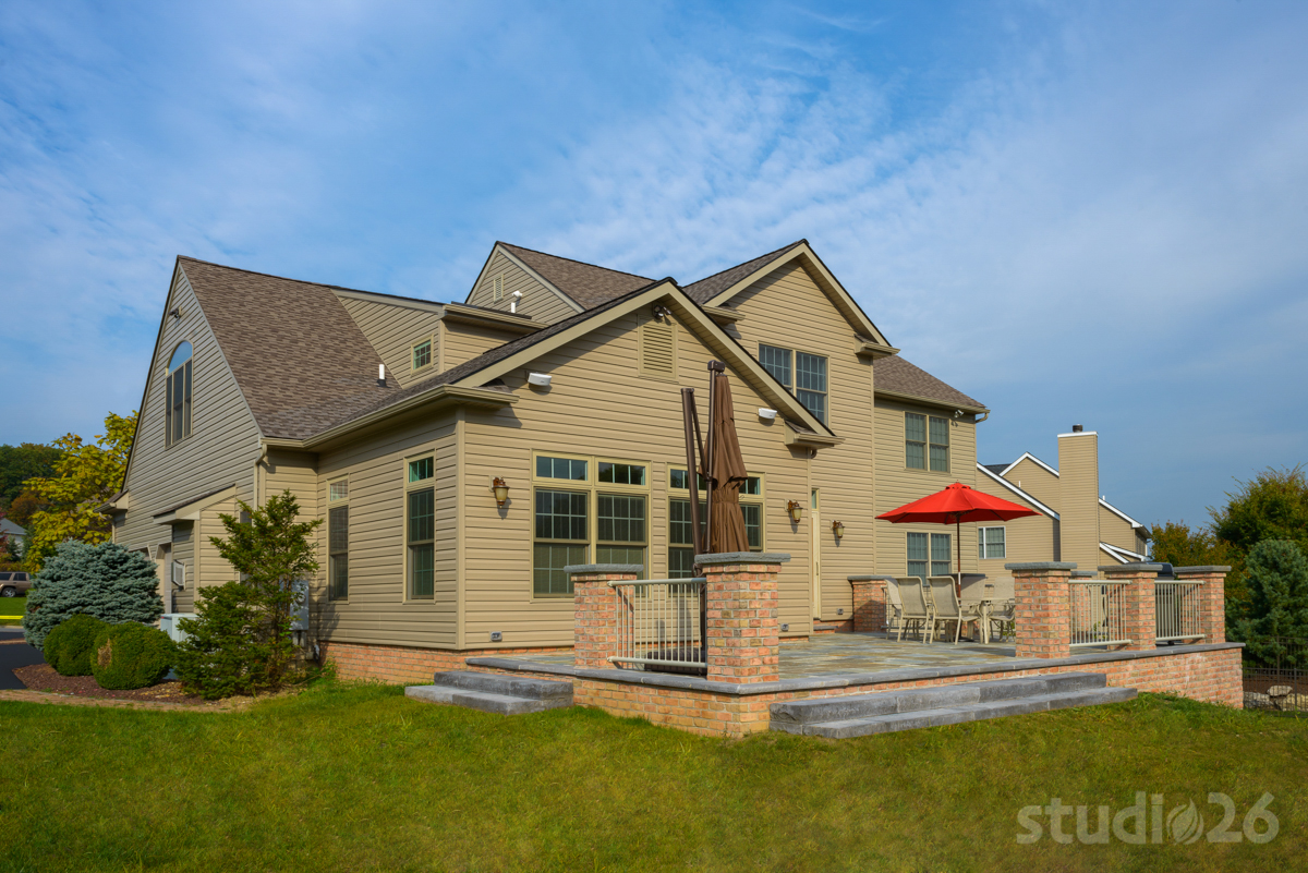Brick Veneer, Vinyl Siding to Match Existing Home, Flagstone Patio with Custom Metal Handrails