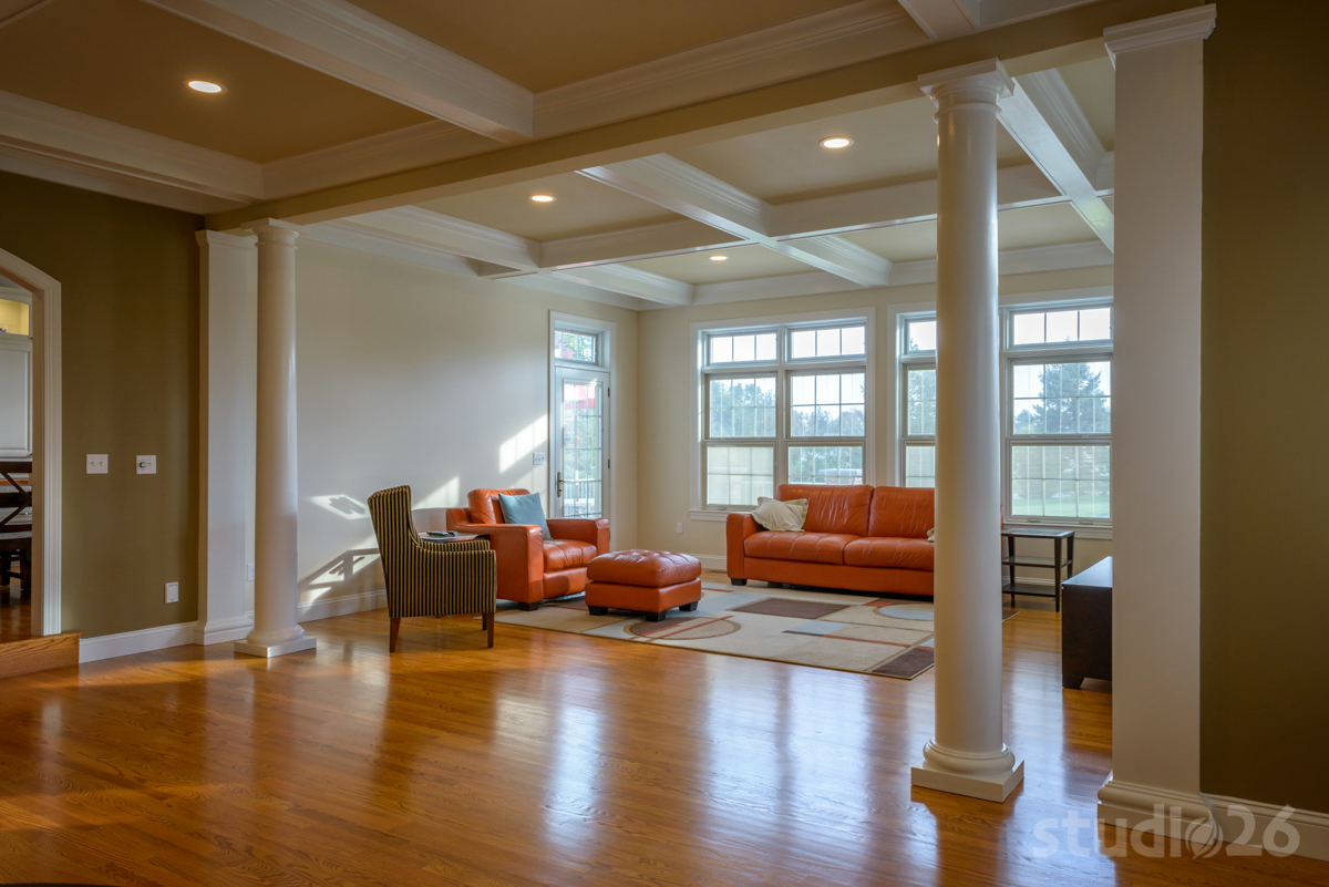 - Installed a striking coffered ceiling to help add a touch of elegance to the space