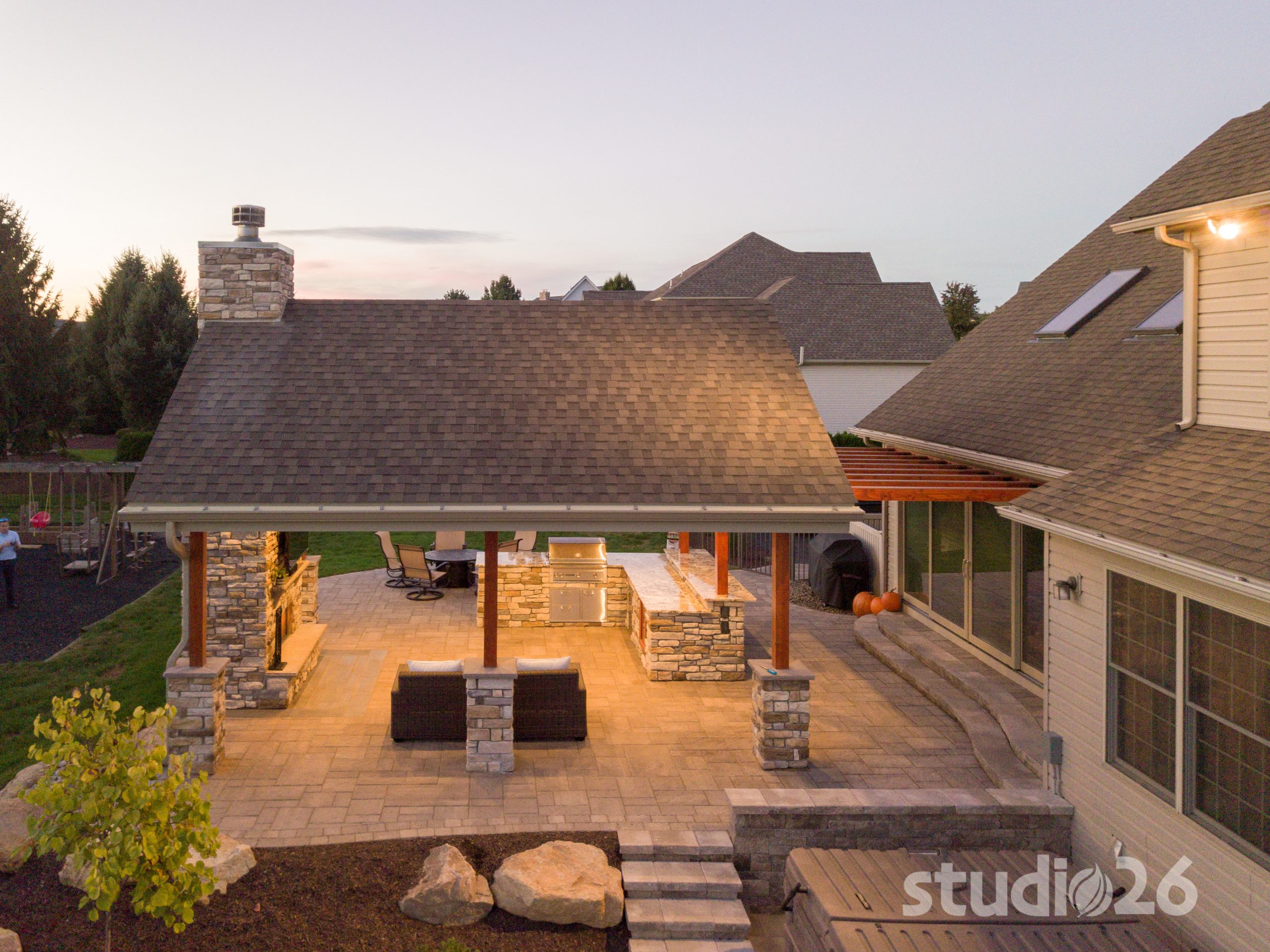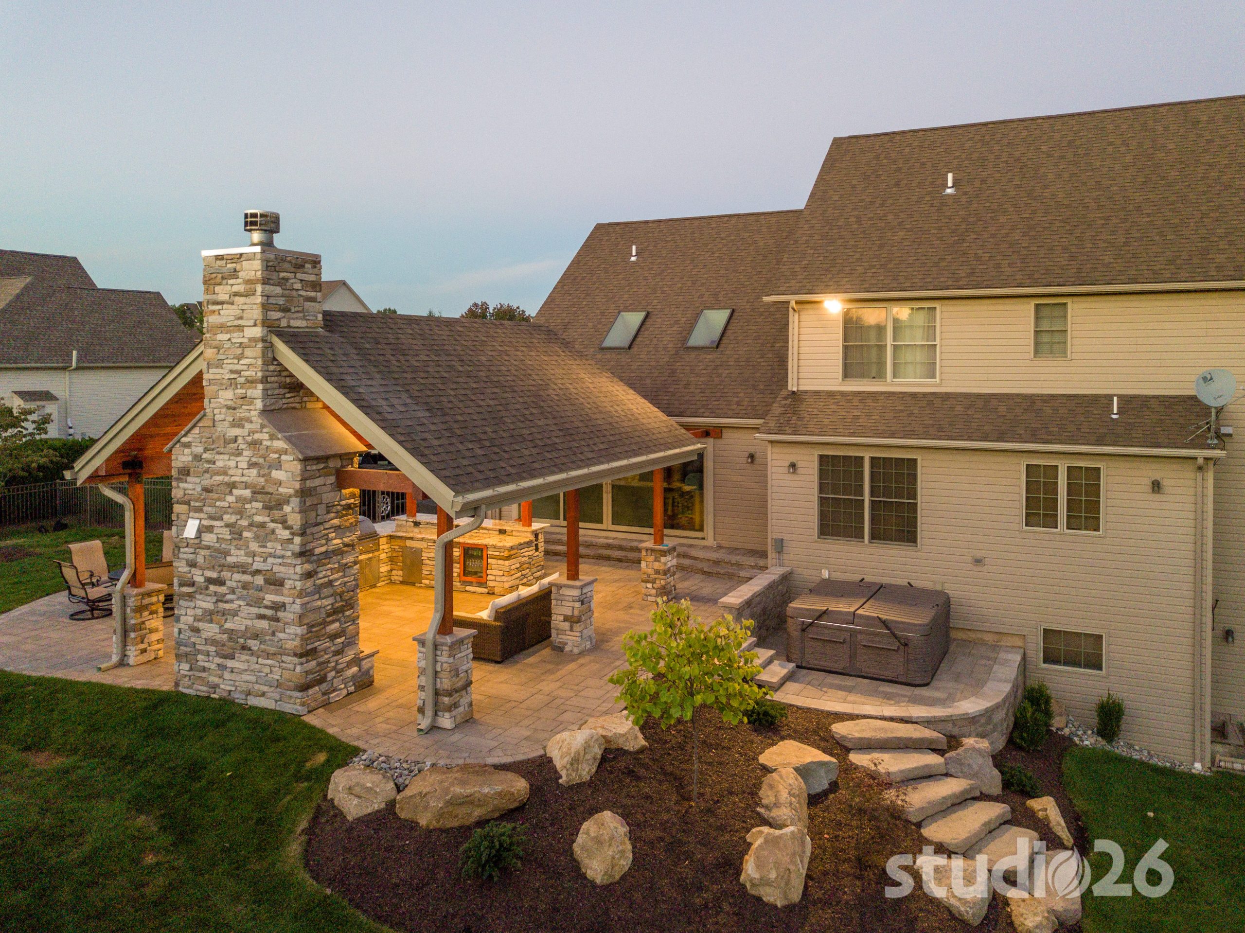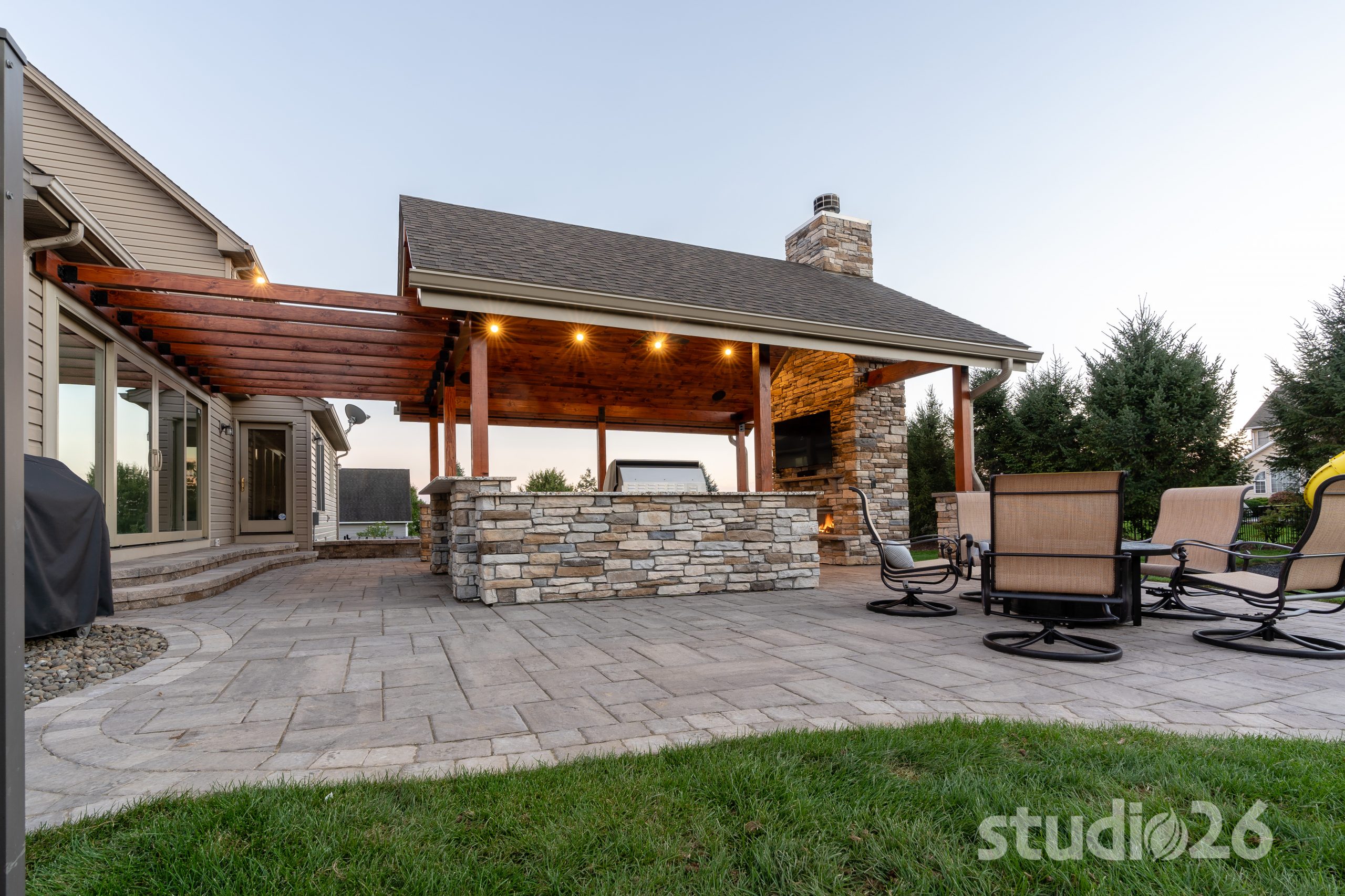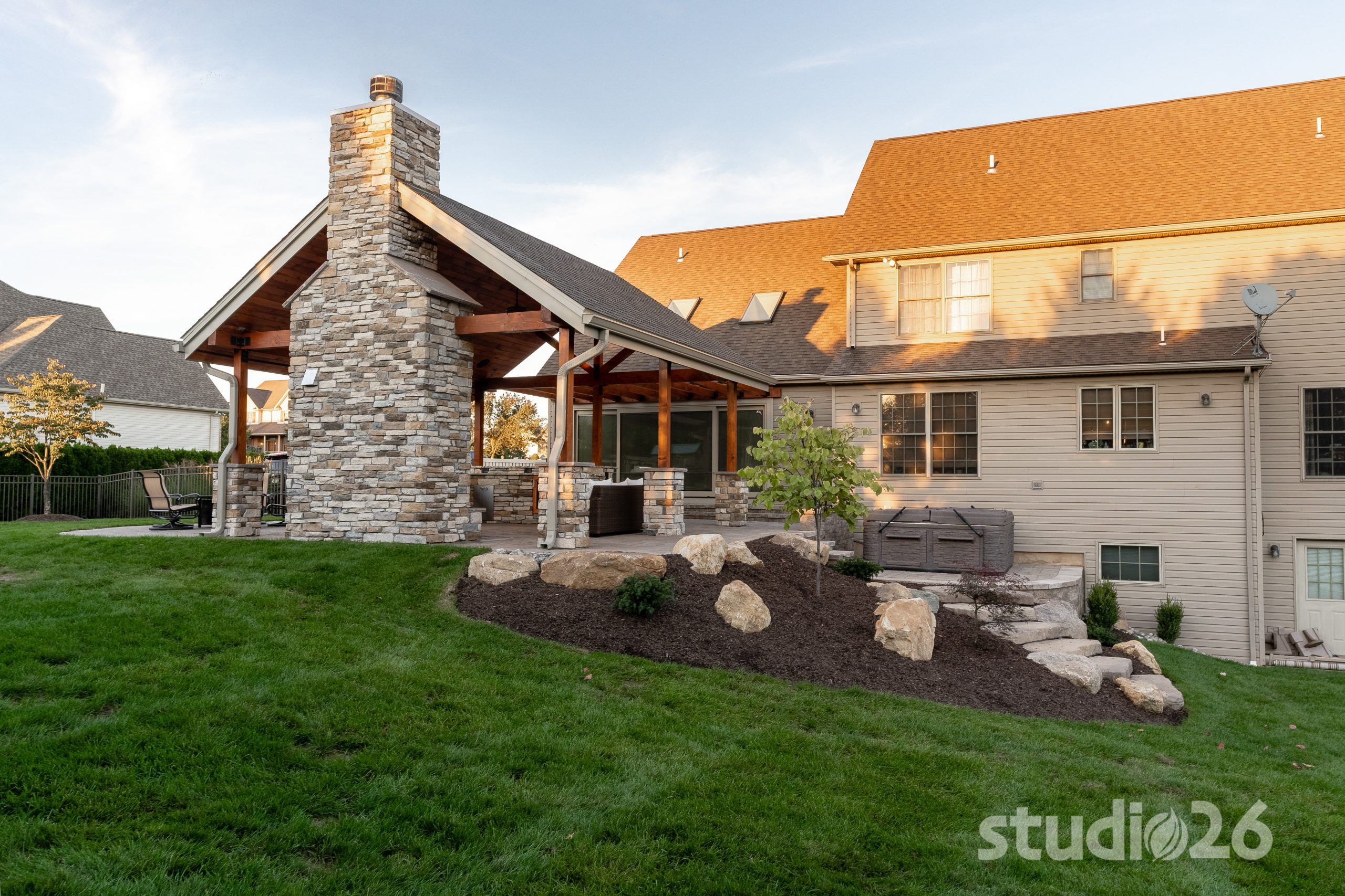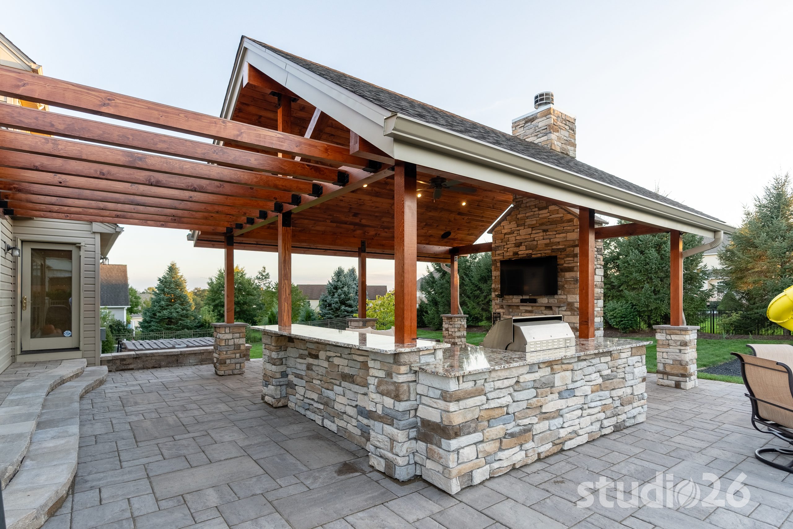 From initial design to full conception, our firm is thankful to have had the opportunity to bring this project to life for our wonderful clients. Looking to expand living beyond the walls of their home, we were able to design and build a new outdoor oasis for their family! At the core resides a large covered porch flanked by other outdoor entertaining areas that include an open-sky patio area and a spa/jacuzzi area incorporated into the natural grading of the landscape.