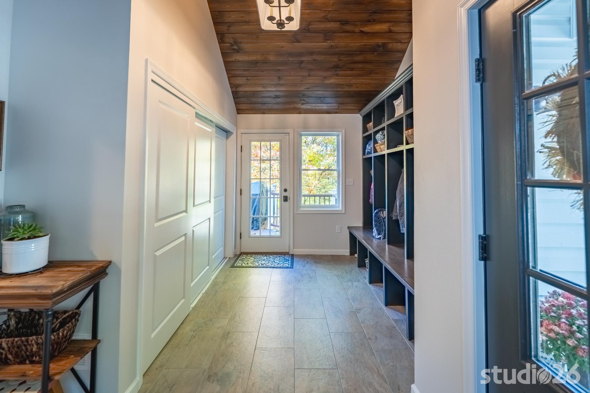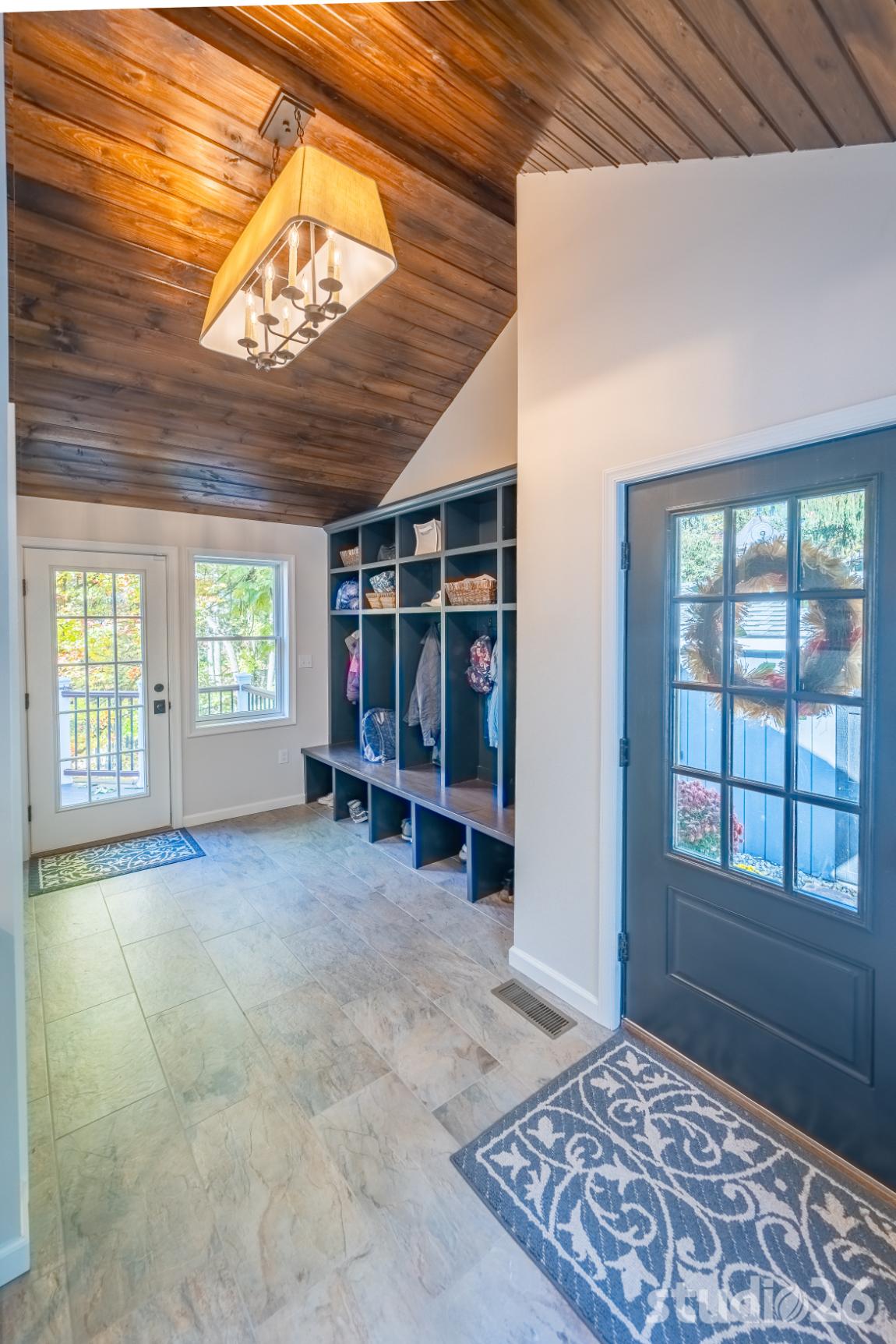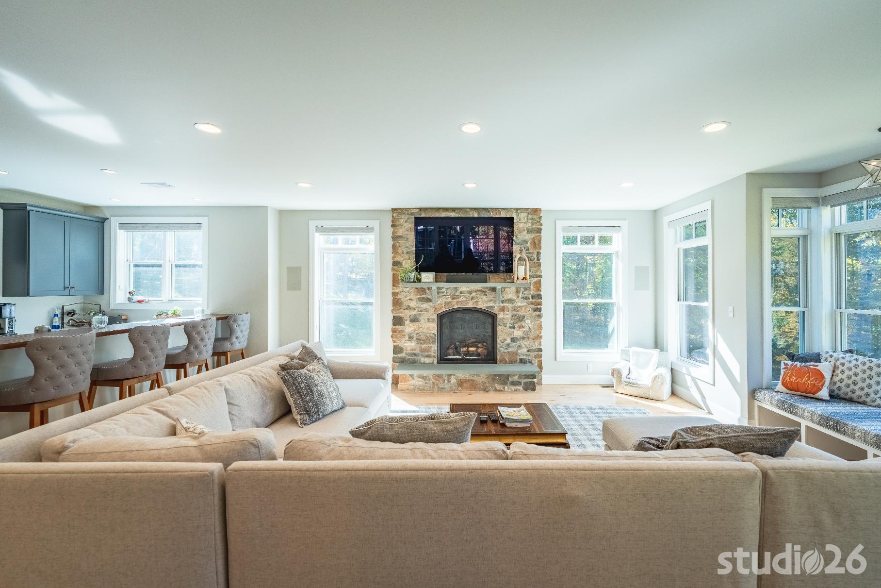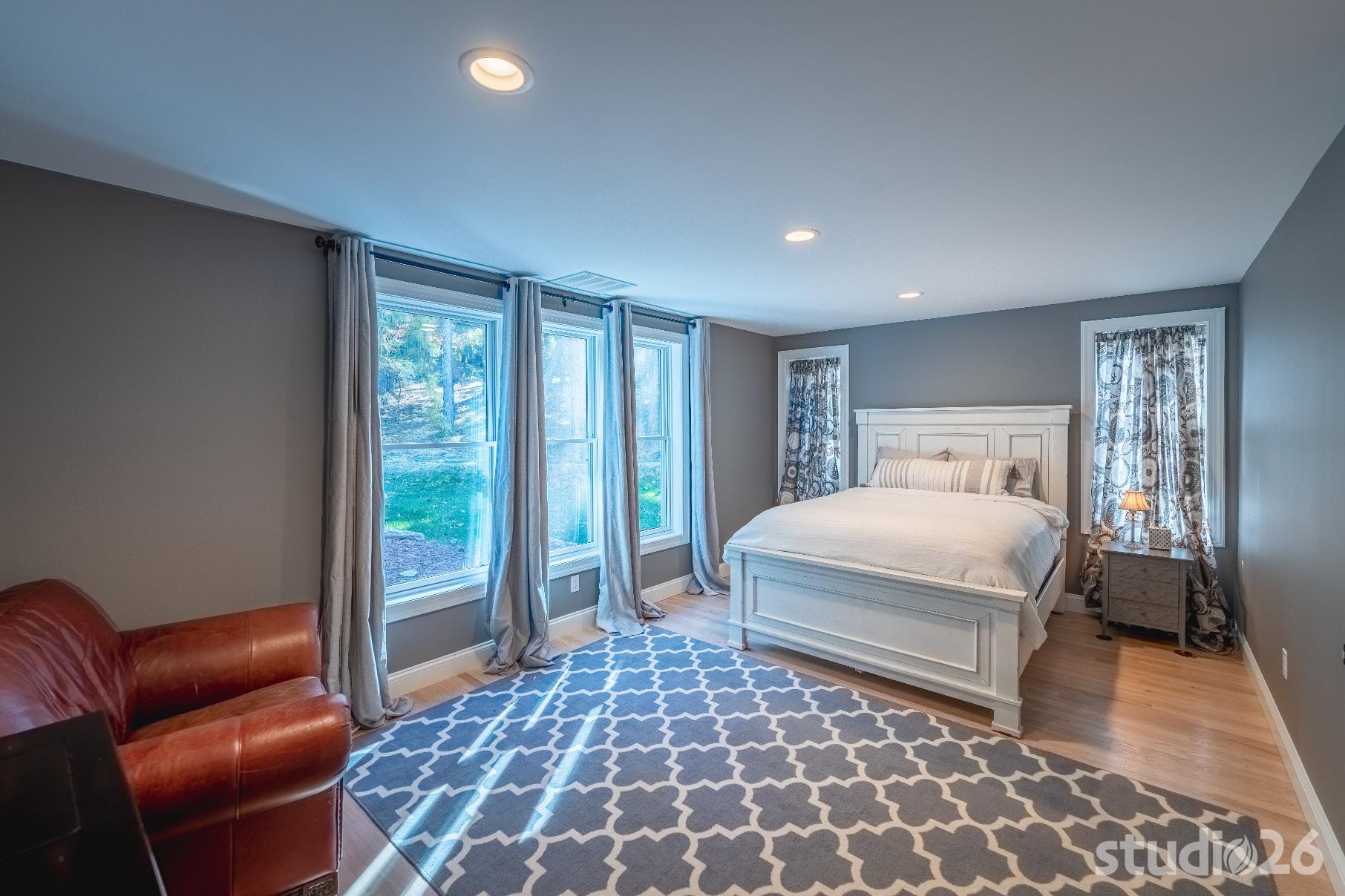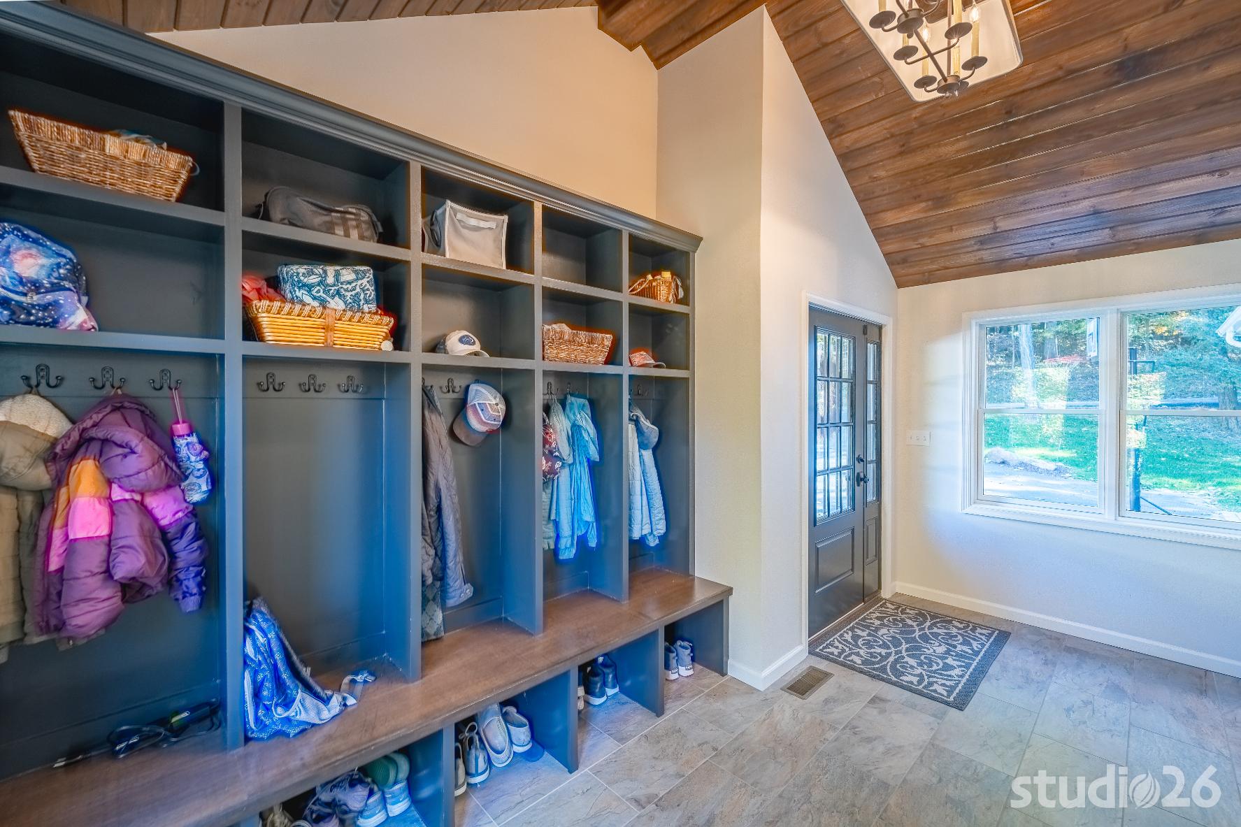For the addition/renovation portion of the project, there were essentially four primary needs: create a mud room since they didn’t previously have one, create a large open play area for their three kids, create a first floor bedroom for visiting in-laws, and create a new master suite oasis with dedicated his/her walk-in closets and a larger, more up-to-date bathroom. Important secondary needs included creating a new home office space that had access to direct natural light, creating a new laundry room up on the second floor (instead of the in the basement where it was originally located), expanding the kitchen and increasing its connectivity to the rest of the home, and creating a new three to four season outdoor covered screened porch. As is common with almost any addition project, we also restored many smaller portions of the home to help deliver a new home that is difficulty to delineate old from new.