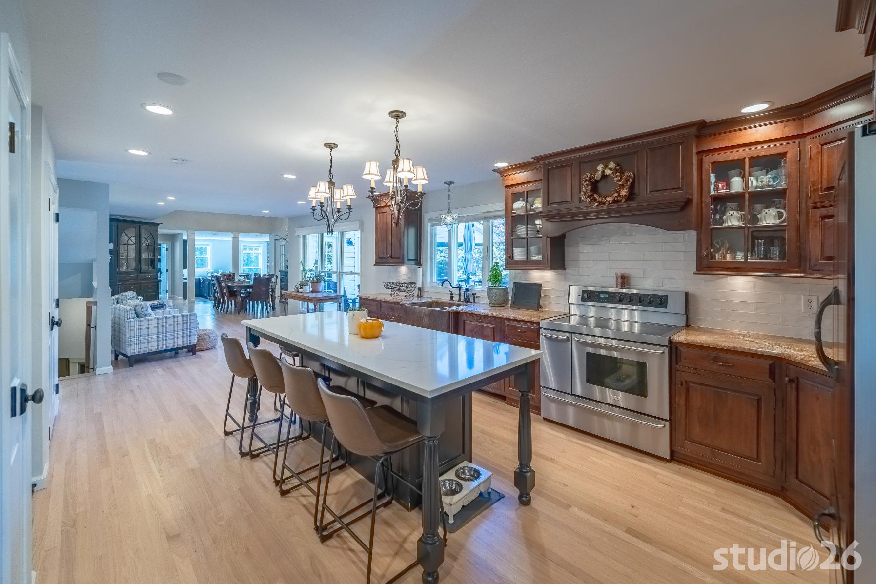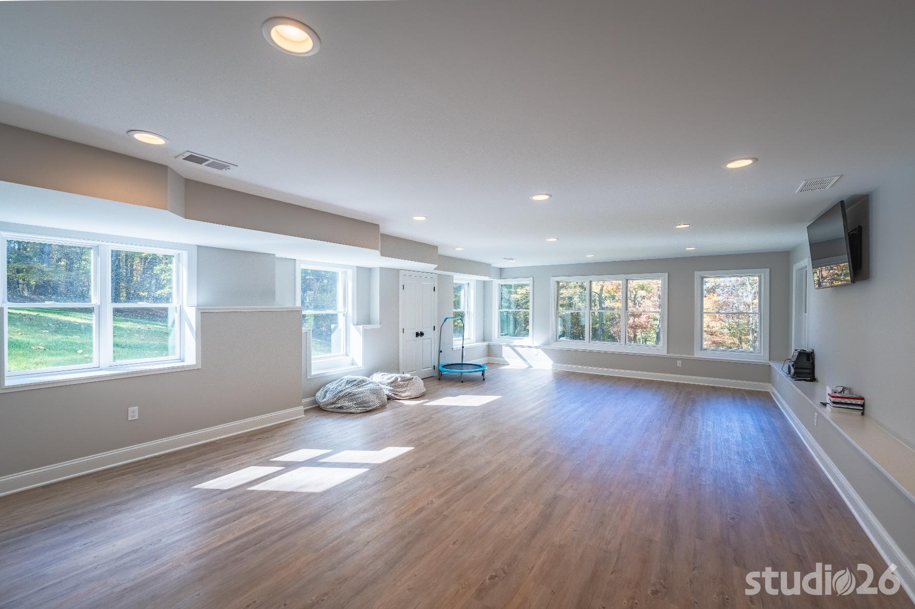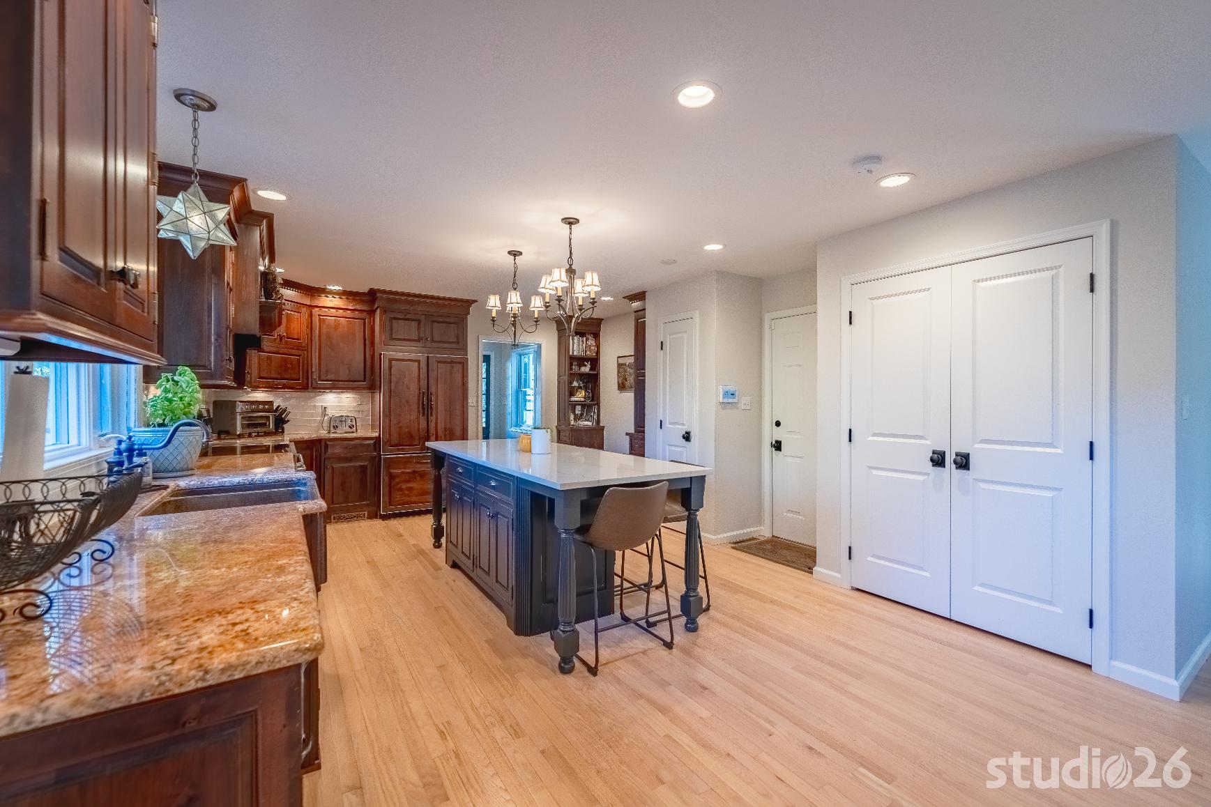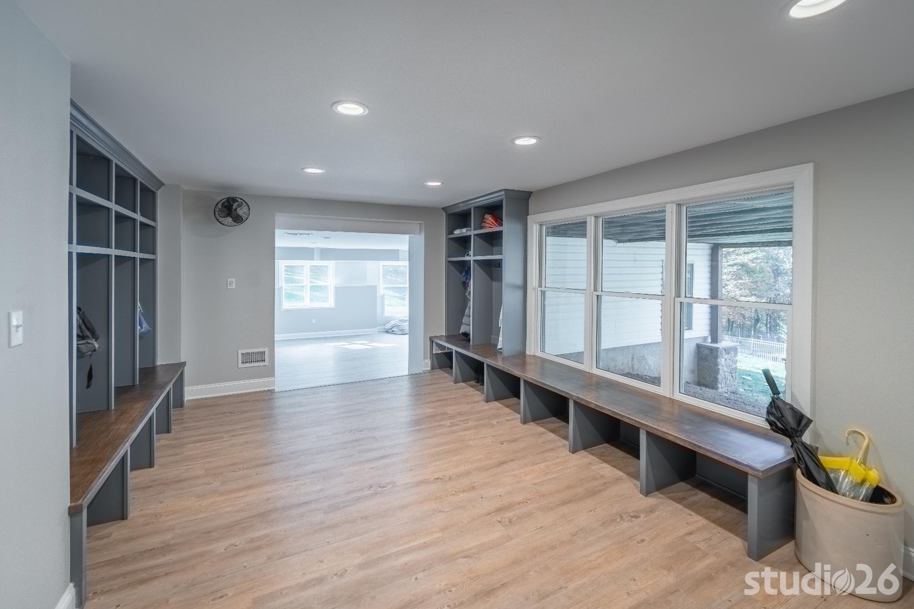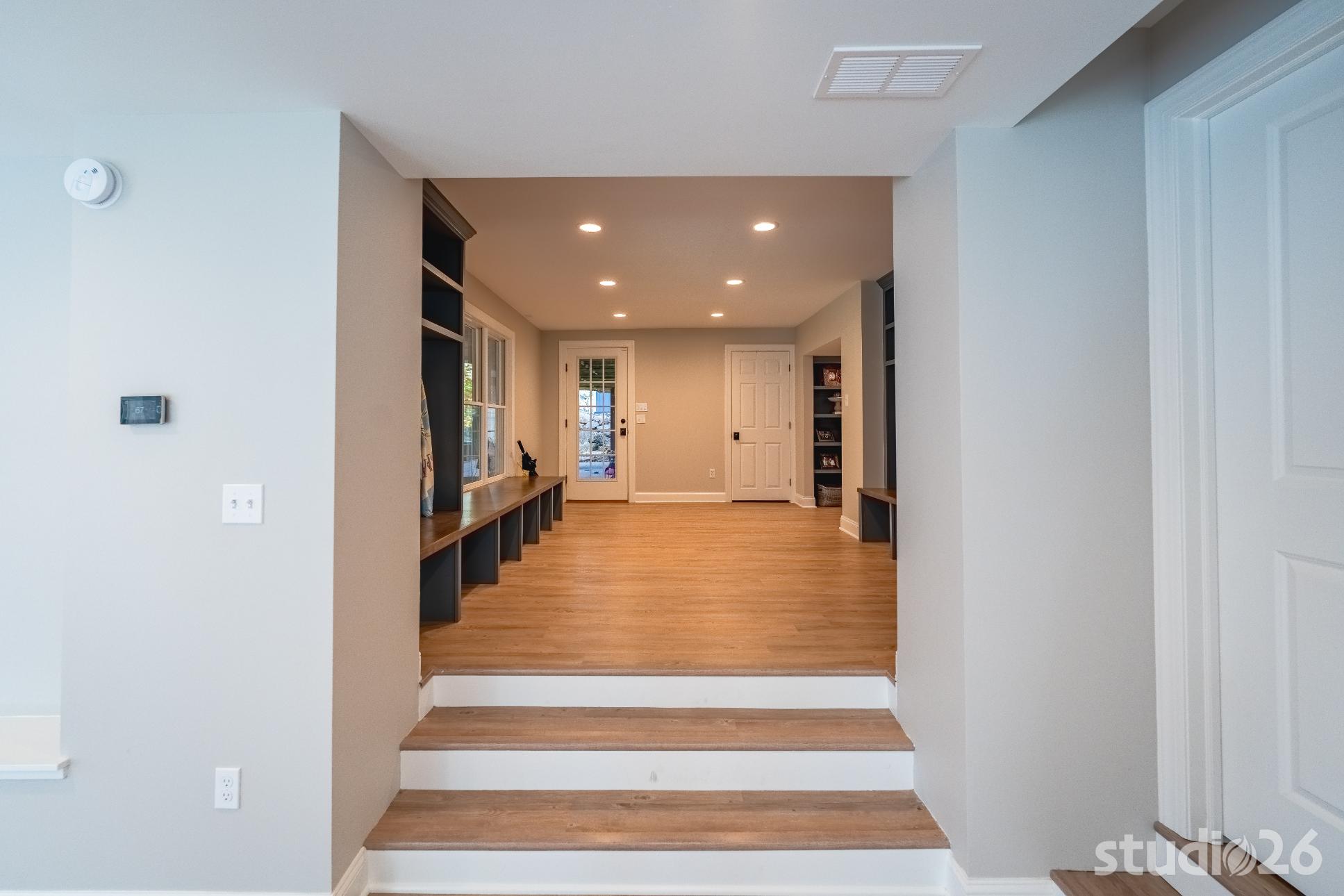For the addition/renovation portion of the project, there were essentially four primary needs: create a mud room since they didn’t previously have one, create a large open play area for their three kids, create a first floor bedroom for visiting in-laws, and create a new master suite oasis with dedicated his/her walk-in closets and a larger, more up-to-date bathroom. Important secondary needs included creating a new home office space that had access to direct natural light, creating a new laundry room up on the second floor (instead of the in the basement where it was originally located), expanding the kitchen and increasing its connectivity to the rest of the home, and creating a new three to four season outdoor covered screened porch. As is common with almost any addition project, we also restored many smaller portions of the home to help deliver a new home that is difficulty to delineate old from new.