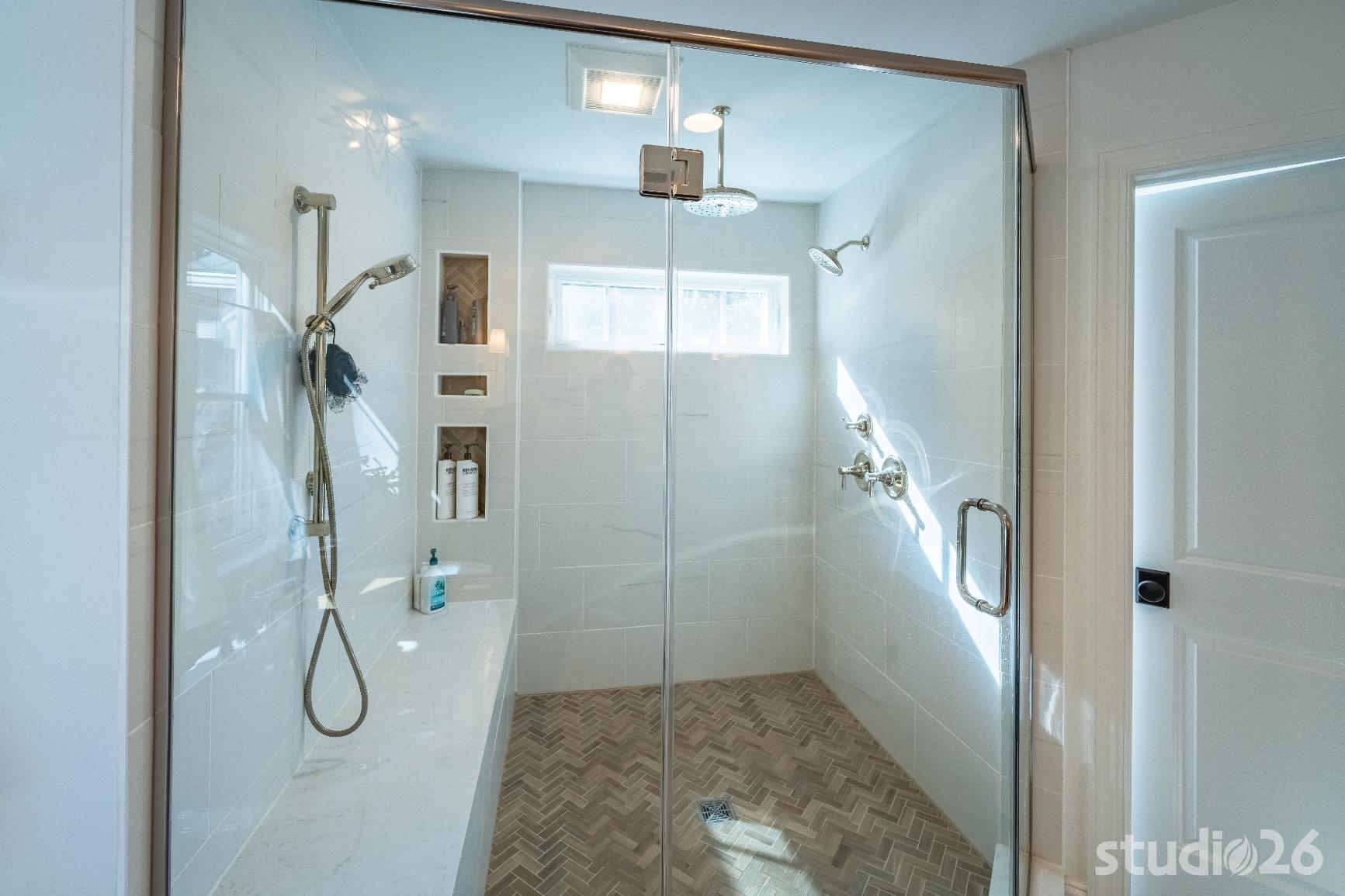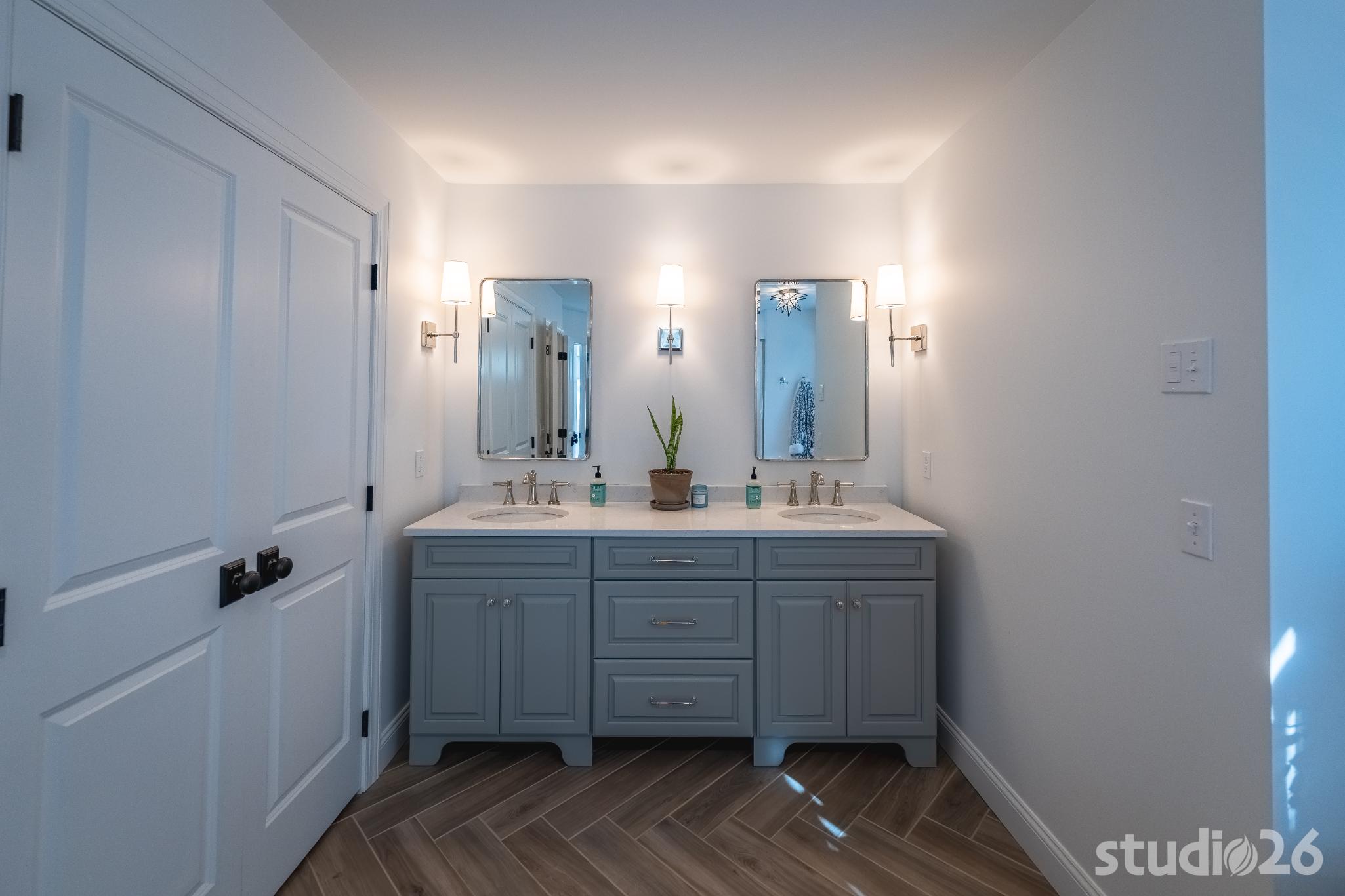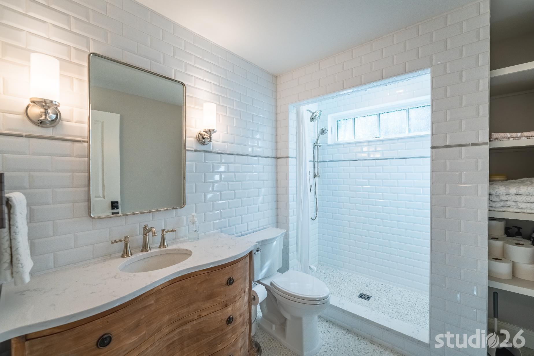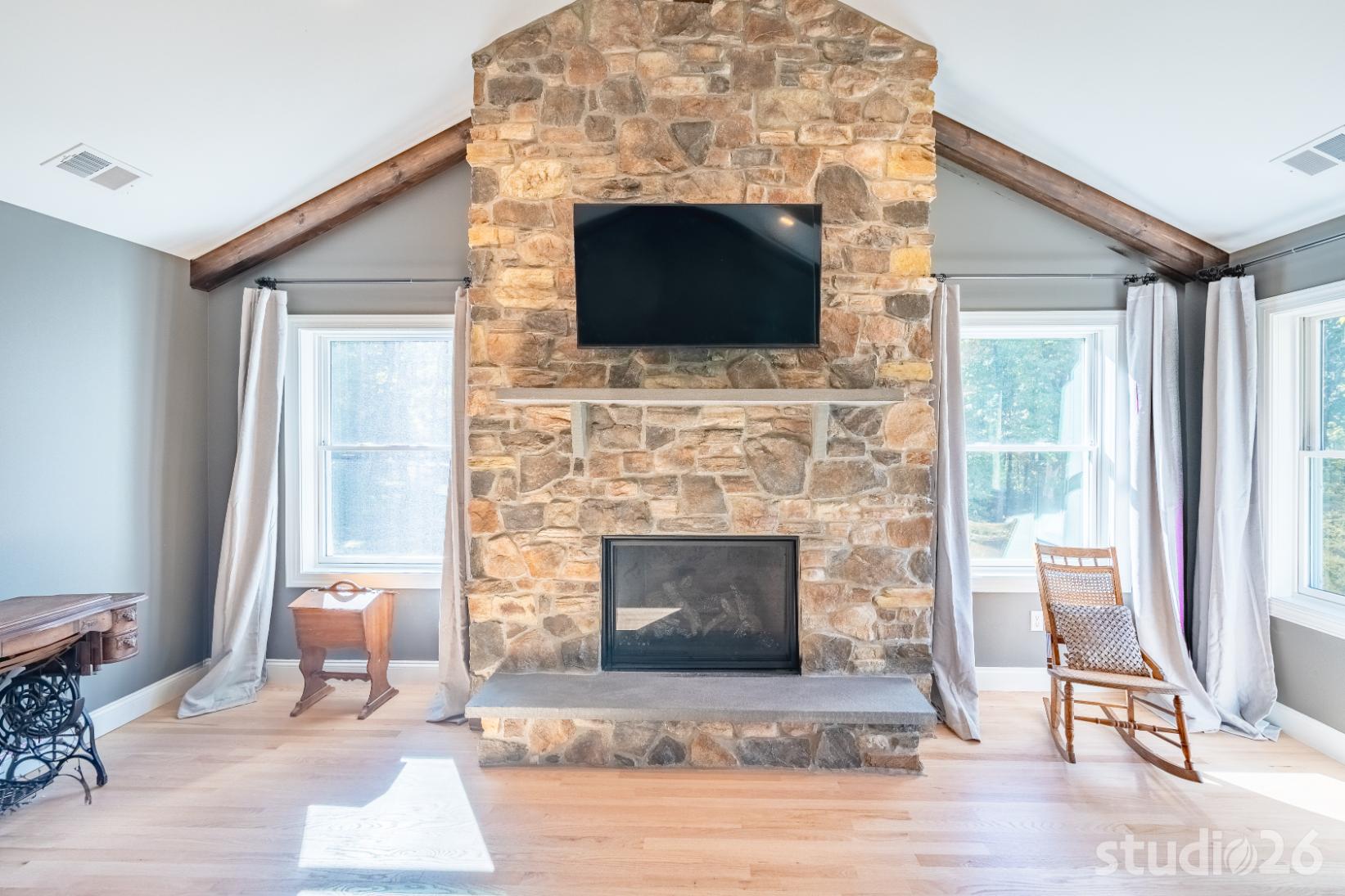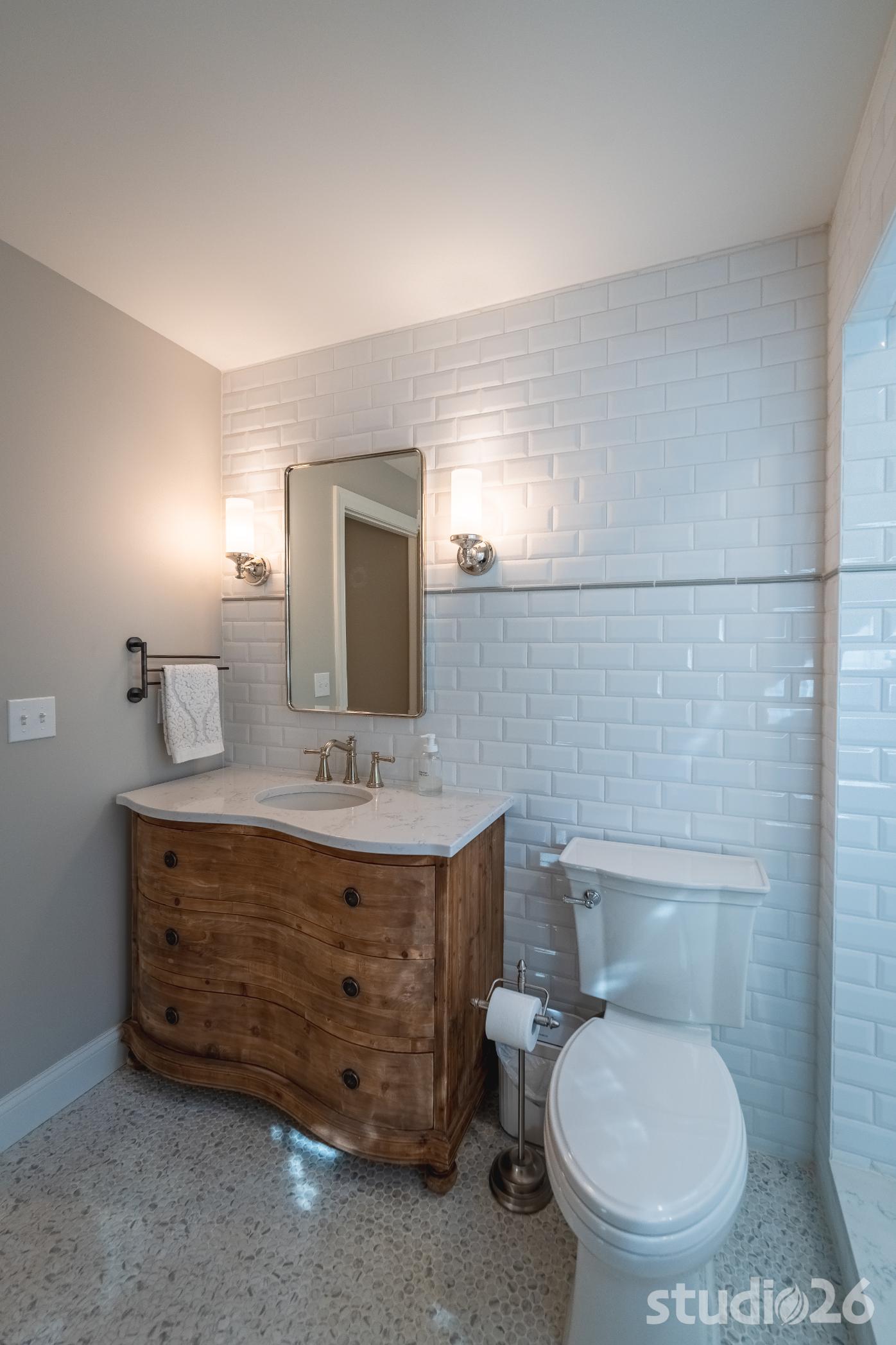For the addition/renovation portion of the project, there were essentially four primary needs: create a mud room since they didn’t previously have one, create a large open play area for their three kids, create a first floor bedroom for visiting in-laws, and create a new master suite oasis with dedicated his/her walk-in closets and a larger, more up-to-date bathroom. Important secondary needs included creating a new home office space that had access to direct natural light, creating a new laundry room up on the second floor (instead of the in the basement where it was originally located), expanding the kitchen and increasing its connectivity to the rest of the home, and creating a new three to four season outdoor covered screened porch. As is common with almost any addition project, we also restored many smaller portions of the home to help deliver a new home that is difficulty to delineate old from new.