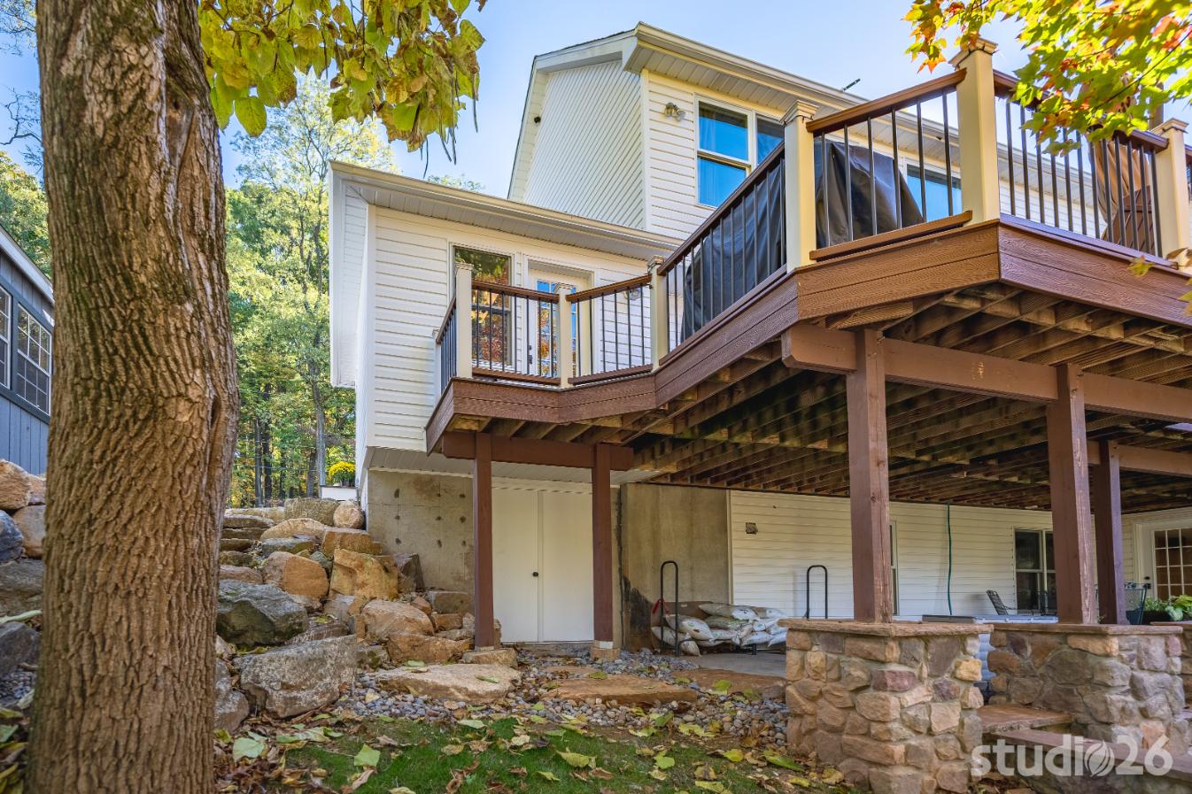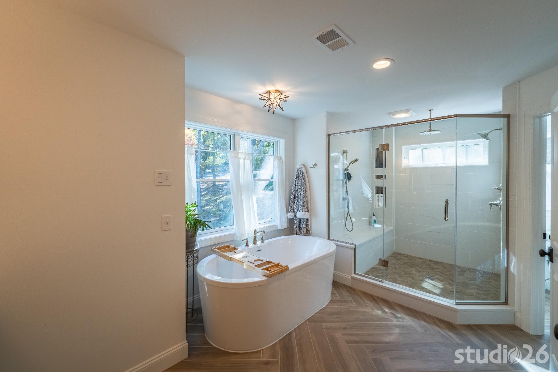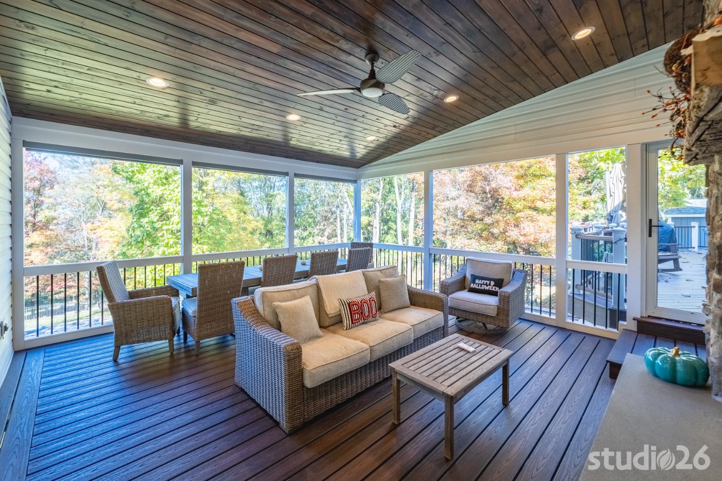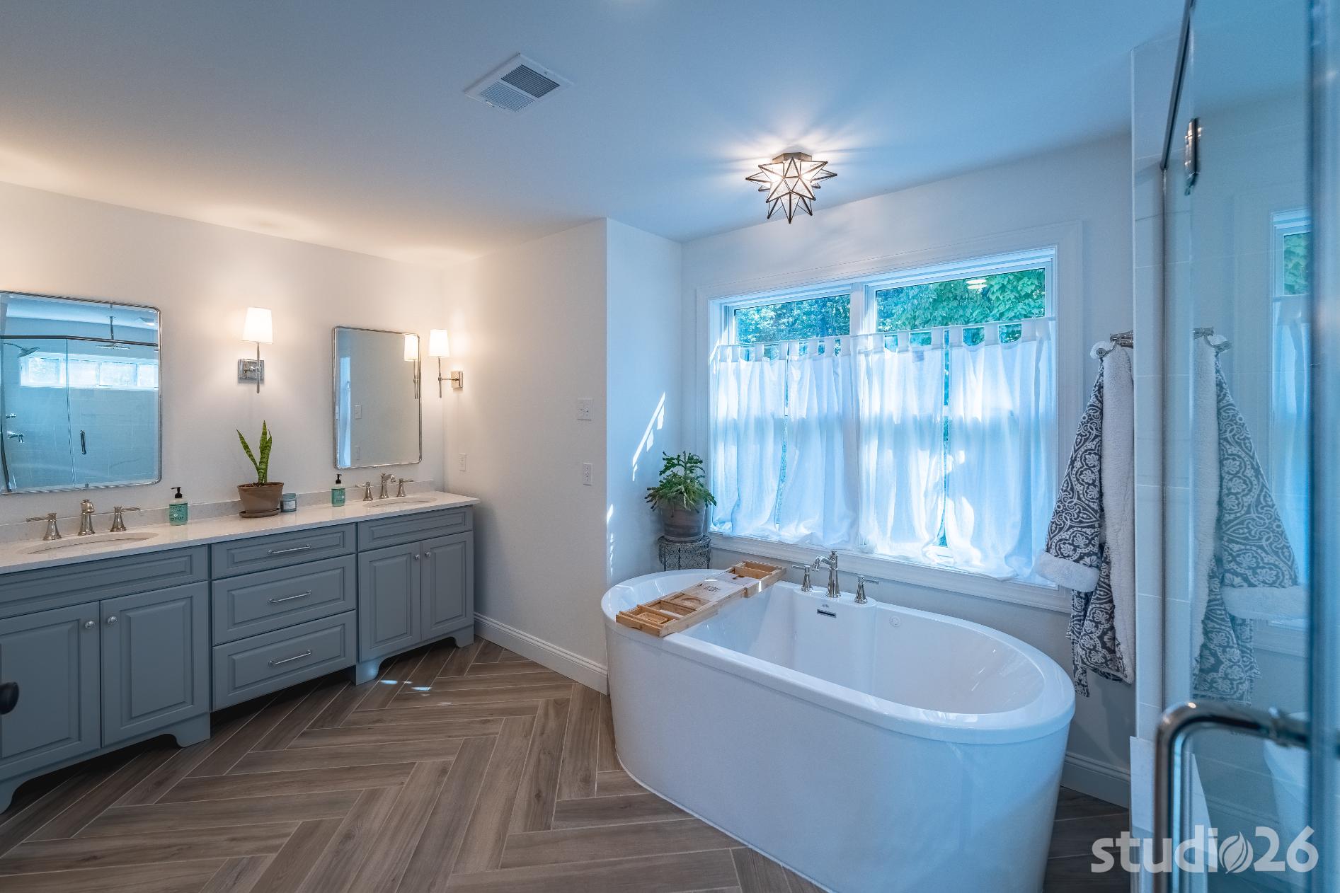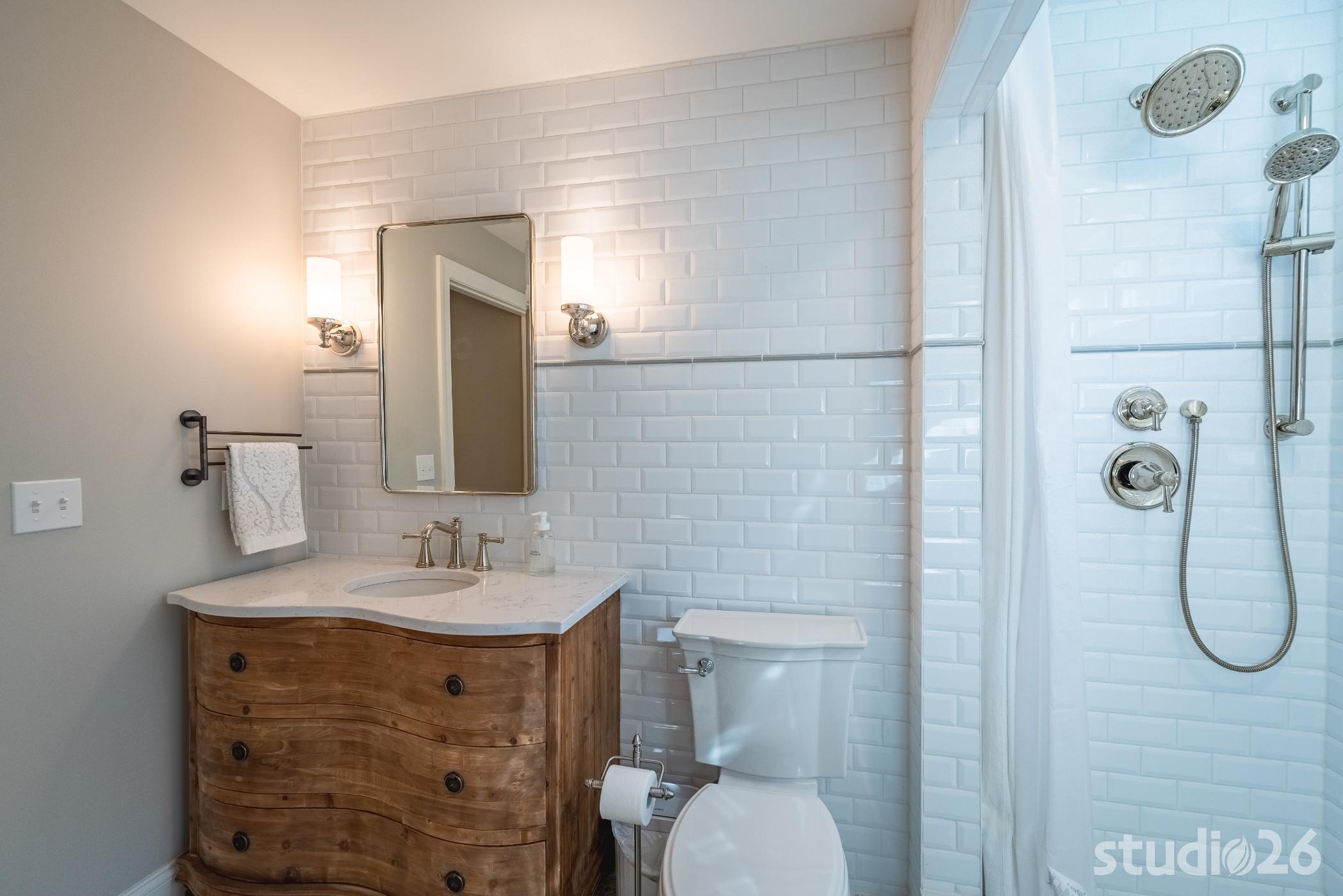 For the addition/renovation portion of the project, there were essentially four primary needs: create a mud room since they didn’t previously have one, create a large open play area for their three kids, create a first floor bedroom for visiting in-laws, and create a new master suite oasis with dedicated his/her walk-in closets and a larger, more up-to-date bathroom. Important secondary needs included creating a new home office space that had access to direct natural light, creating a new laundry room up on the second floor (instead of the in the basement where it was originally located), expanding the kitchen and increasing its connectivity to the rest of the home, and creating a new three to four season outdoor covered screened porch. As is common with almost any addition project, we also restored many smaller portions of the home to help deliver a new home that is difficulty to delineate old from new.