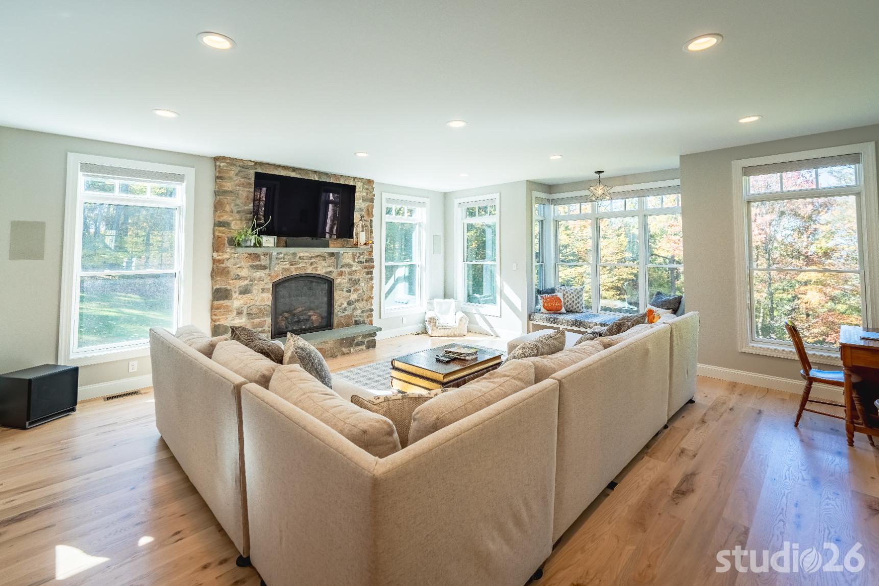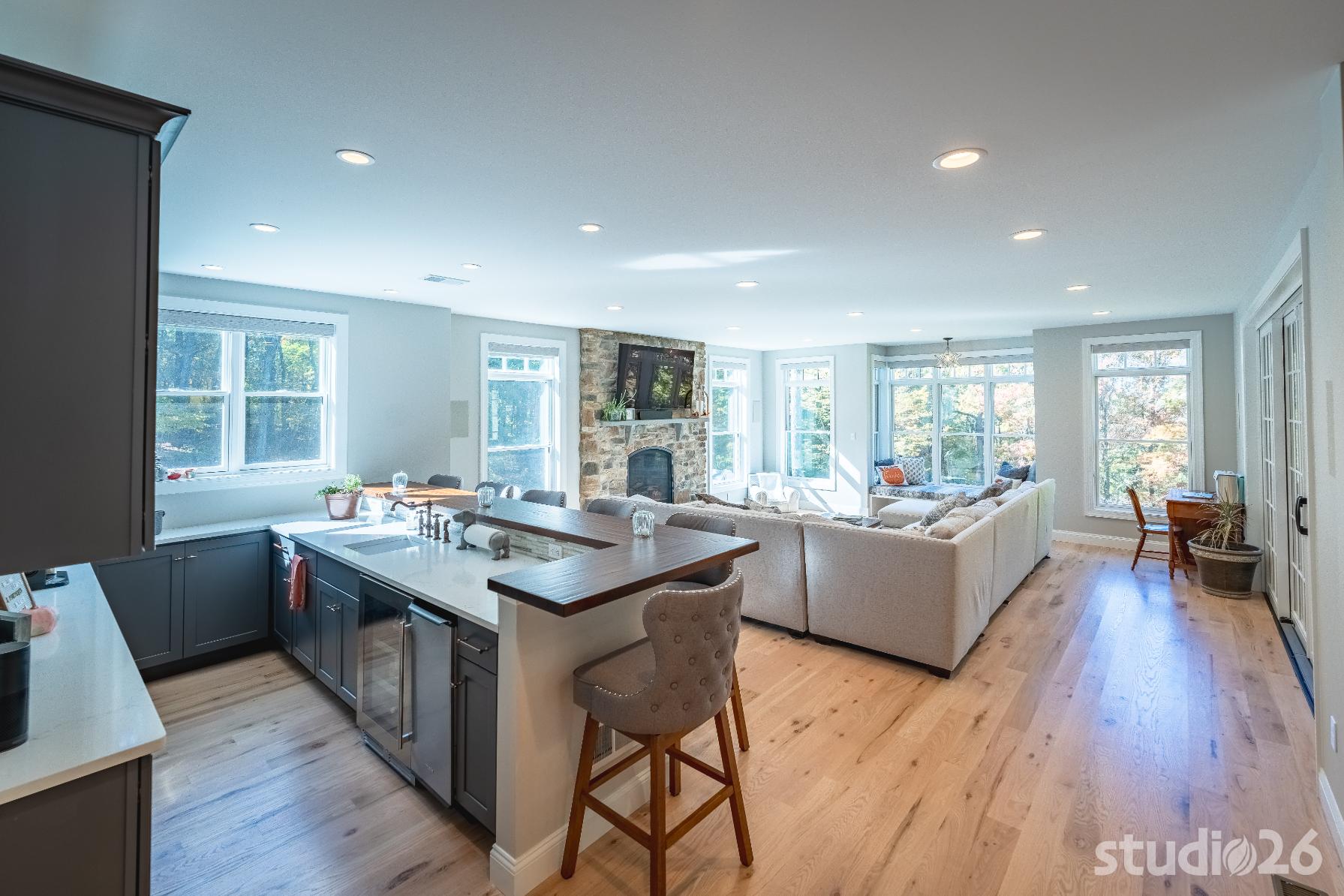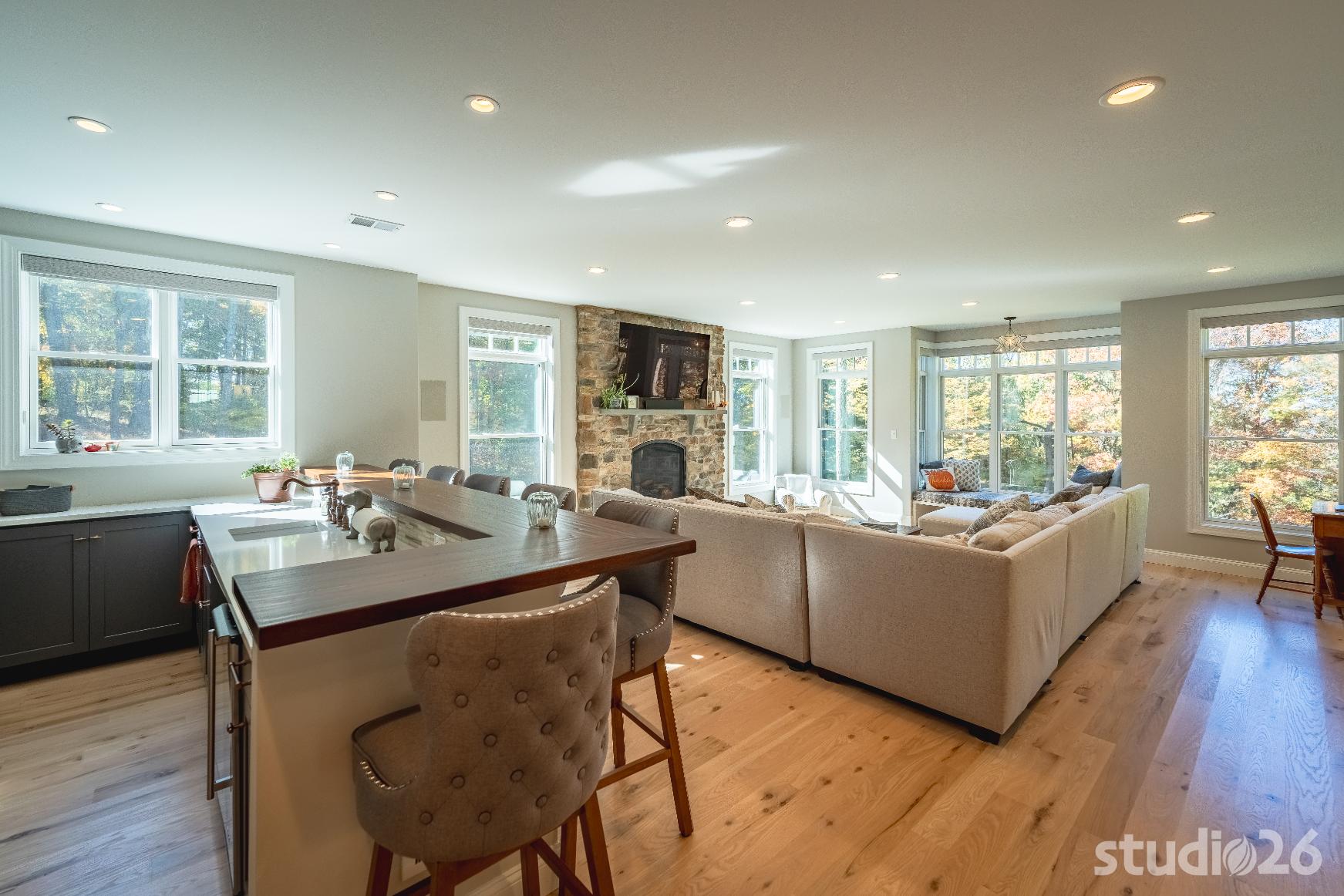 In working through an intensive design process, this project expanded from a single smaller scale addition on one side of the home to a much larger two-sided addition/renovation project including a substantial amount of additional site work not originally in the project scope such as expanding the septic system, remediating all of the existing site drainage issues, and expanding the onsite parking potential for their expanded family and friends.