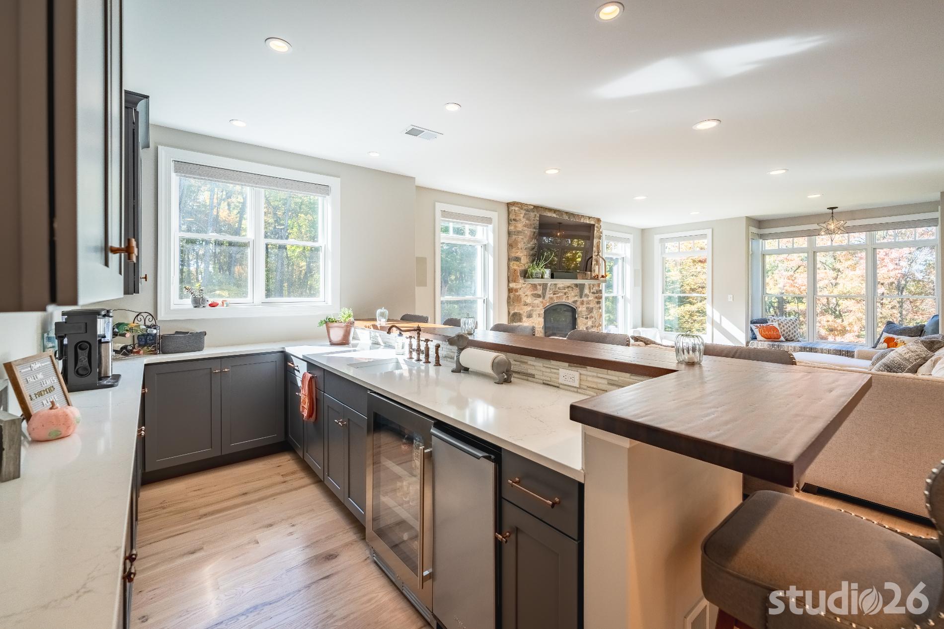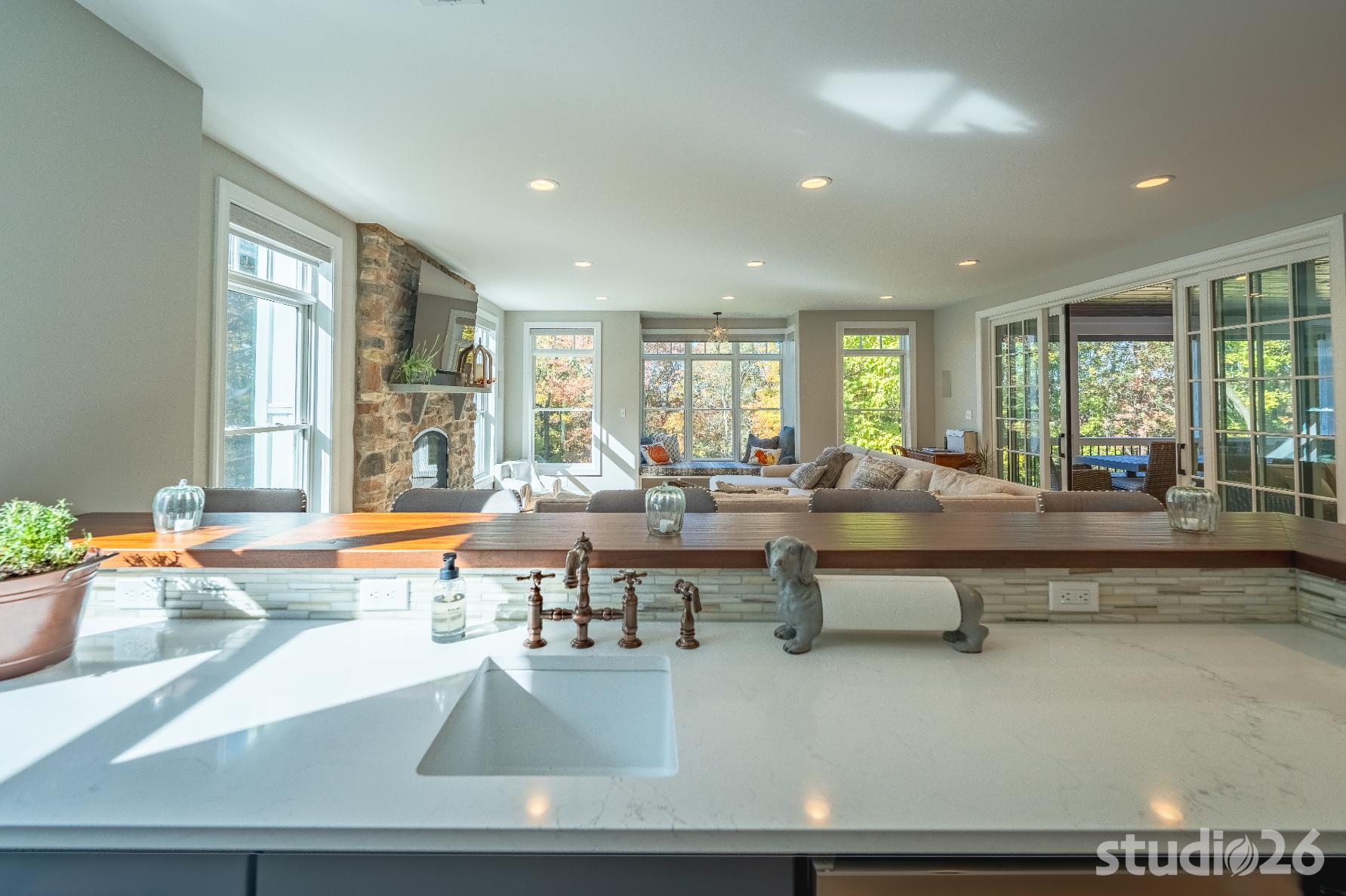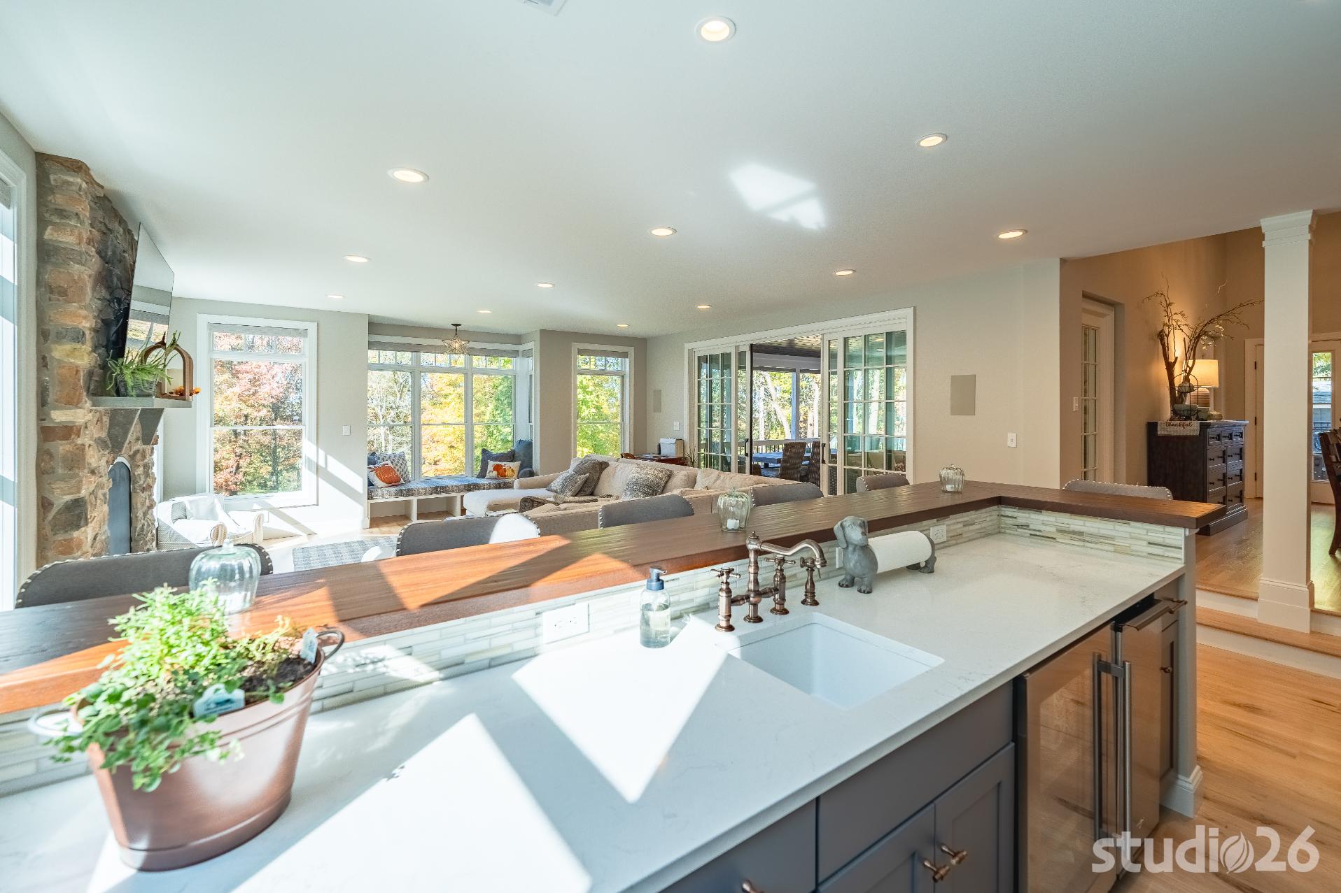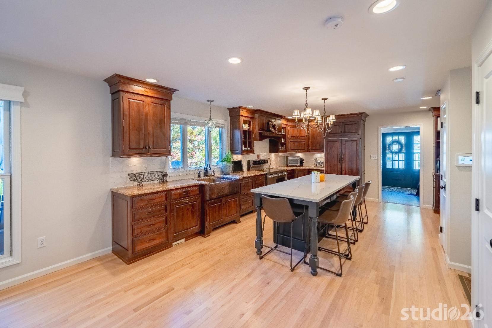 In working through an intensive design process, this project expanded from a single smaller scale addition on one side of the home to a much larger two-sided addition/renovation project including a substantial amount of additional site work not originally in the project scope such as expanding the septic system, remediating all of the existing site drainage issues, and expanding the onsite parking potential for their expanded family and friends.