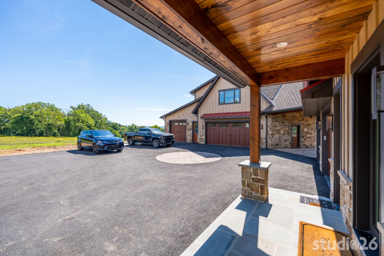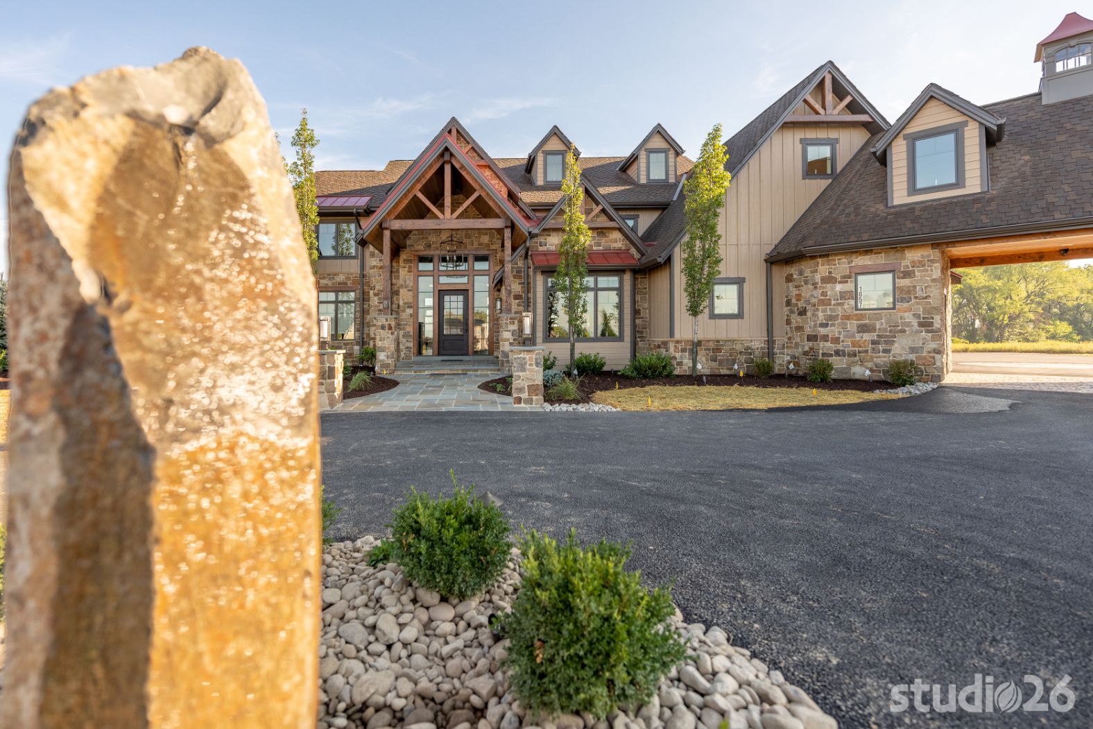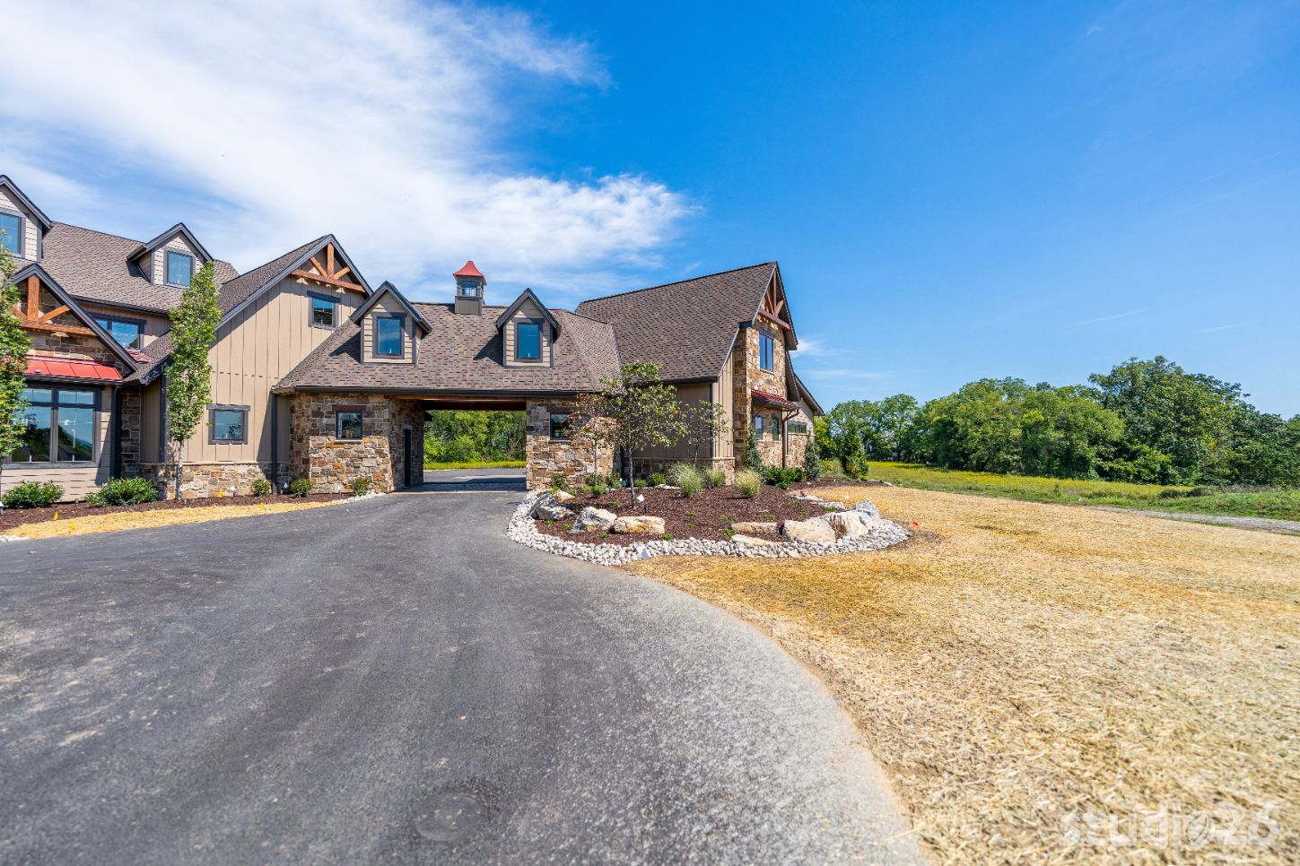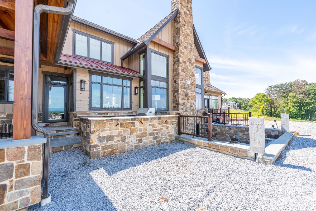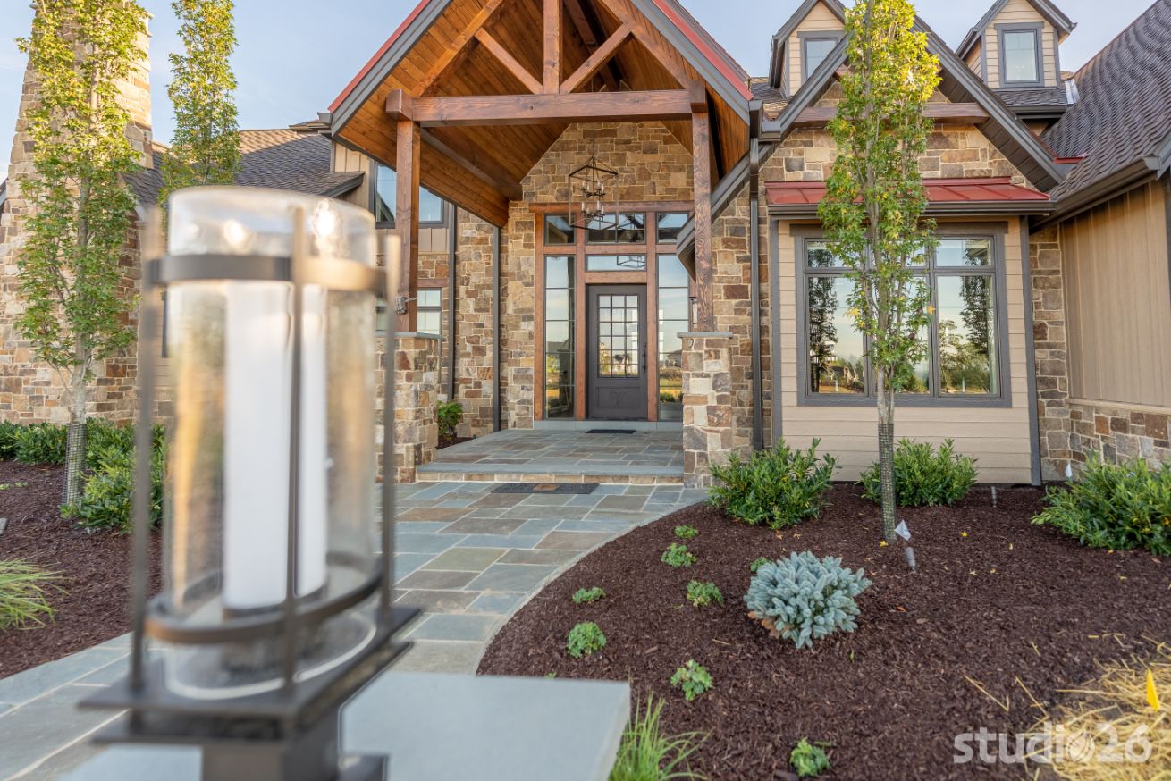Introducing profound luxurious living at its finest! Perched upon an amazing panoramic site with nearly 360 degree views, this high-performance Colorado Craftsman-inspired residence truly embraces its breathtaking setting all around. Upon arrival, its stunning presence provides an unmatched curb appeal with its tasteful blend of stone, composite wood siding, metal roofing, glazing, and detailed beamwork. The home’s graceful stance is quite memorable as it rests comfortably in a lush, serene landscape anchored by thoughtful bluestone walkways and patios and an inviting round-about driveway which leads through the quaint porte cochere into the vast motor court anchored by five distinct garage bays.