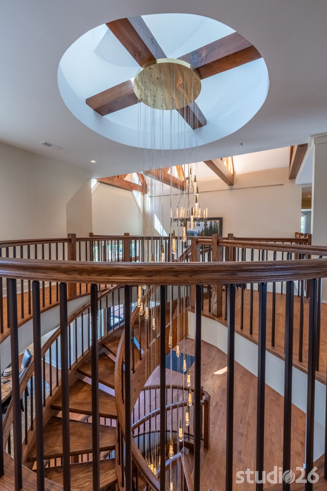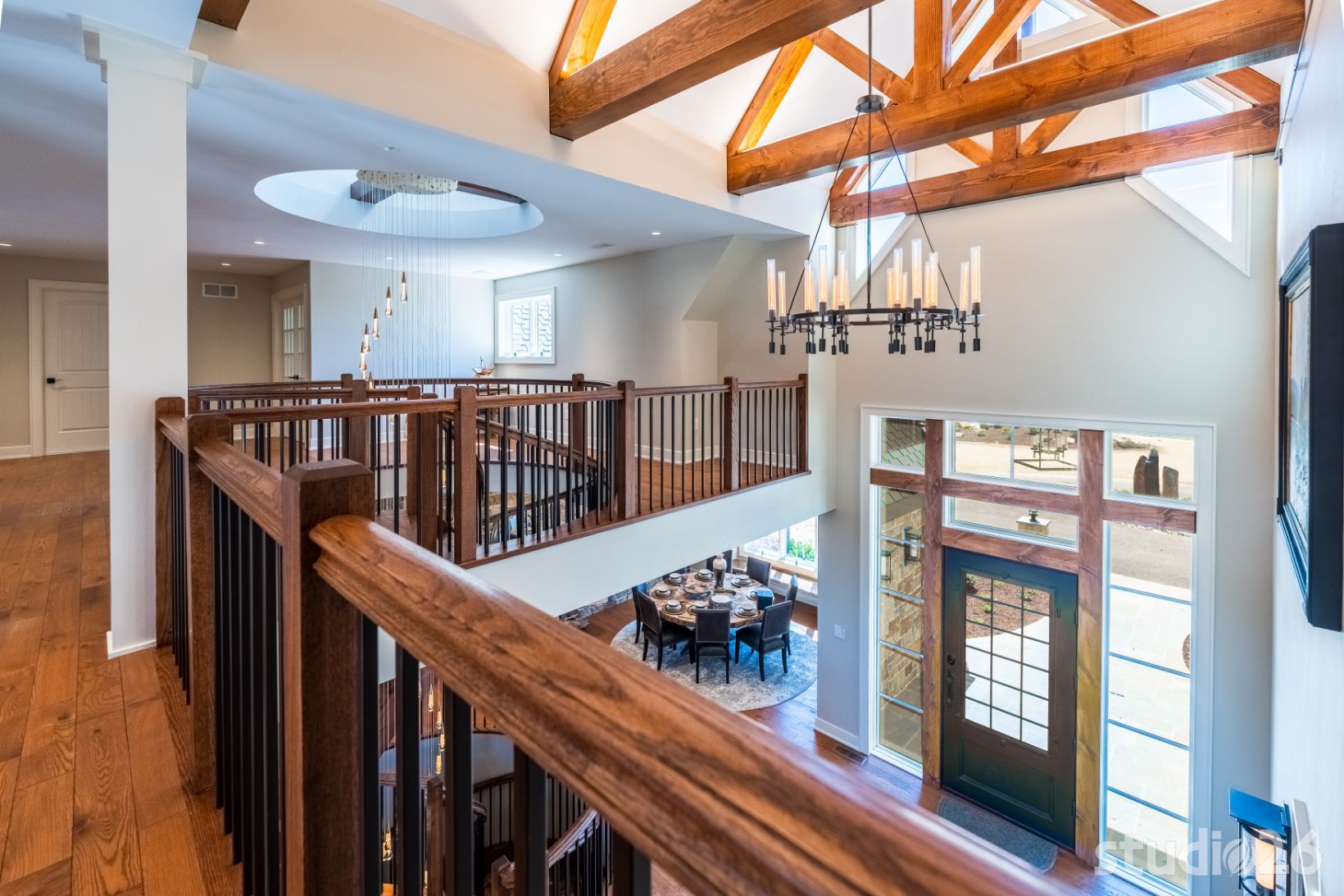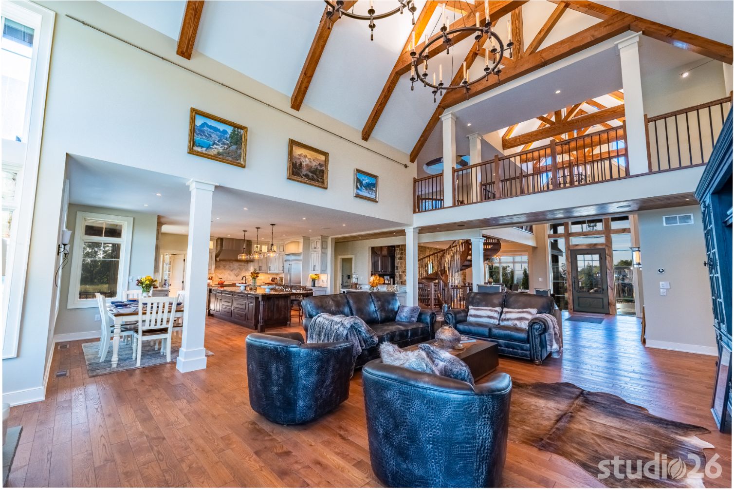 Stepping inside, guests walk through a massive 42” x 8’ tall bronze glass door into an awe-inspiring foyer with exciting glimpses into adjacent rooms including the majestic great room and outdoor pool beyond; and perhaps most prominent is the playful circular staircase and its exquisite ‘weeping’ chandelier! Close by is the professional chef’s kitchen complete with an illustrious island and an adjacent prep kitchen that also serves as a large pantry. Supporting spaces such as the alluring powder room, custom cabinet-filled mud room, and first floor laundry help make day to day living that much more enjoyable!