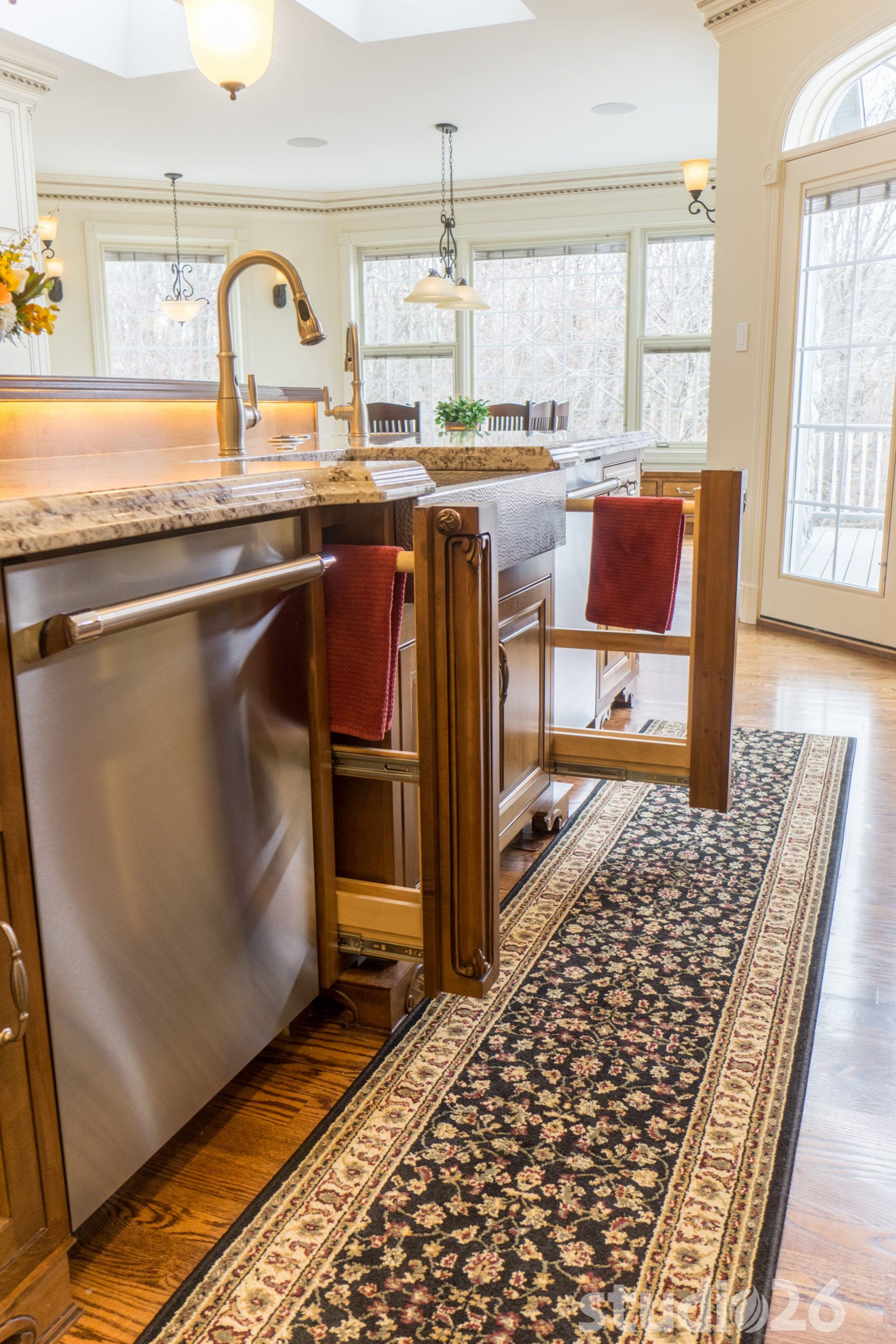 After our client initially worked with a few kitchen designers without the results they were seeking, our firm was fortunate to receive the call from some great folks to help them completely update and transform their kitchen, sunroom, dining room, and living room. With their adult kids’ families nearby and the number of grandchildren growing, hosting family events all together during the holidays and special occasions was starting to become increasingly more difficult for our client. As a result, we were asked to help them design and reimagine four previously separate spaces into two more open and quite functional spaces to better meet their growing family’s needs.