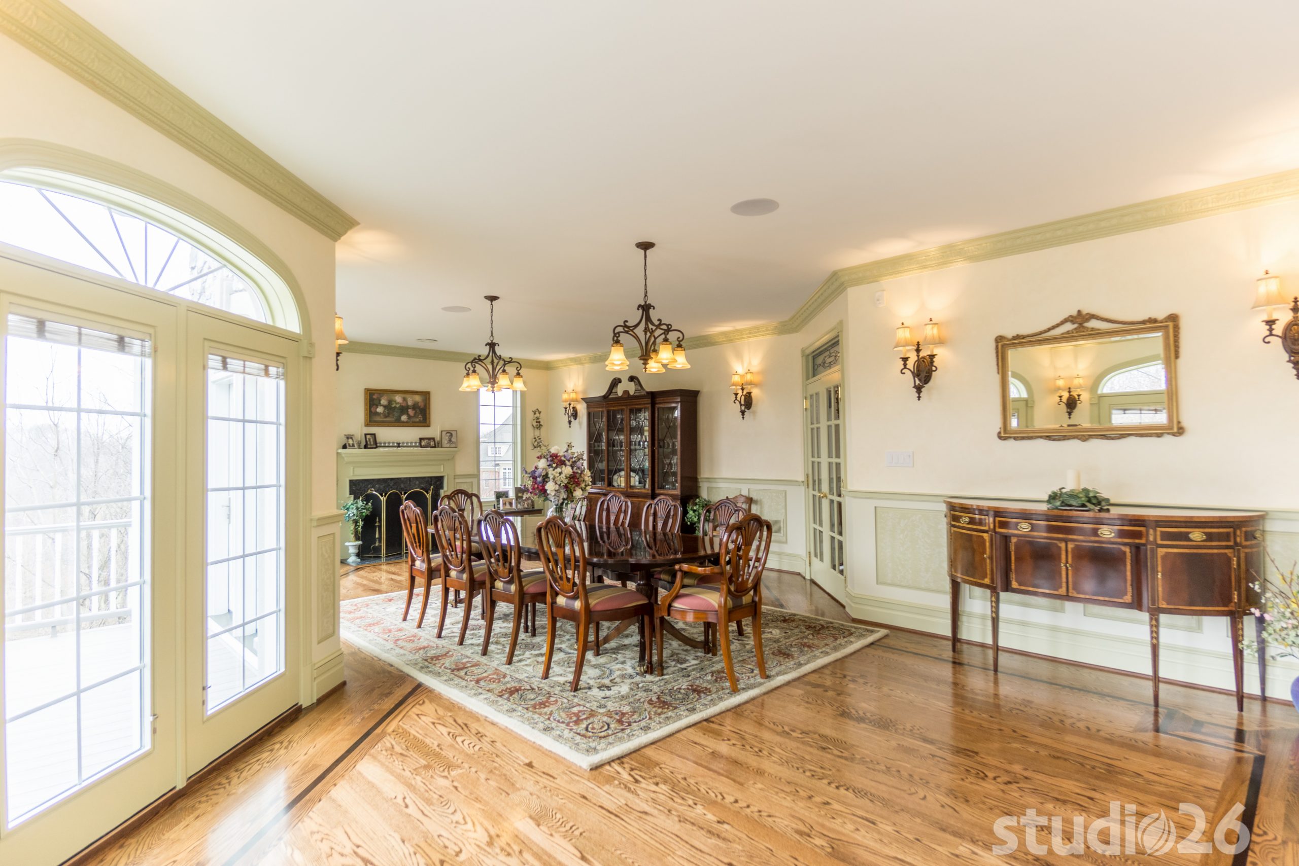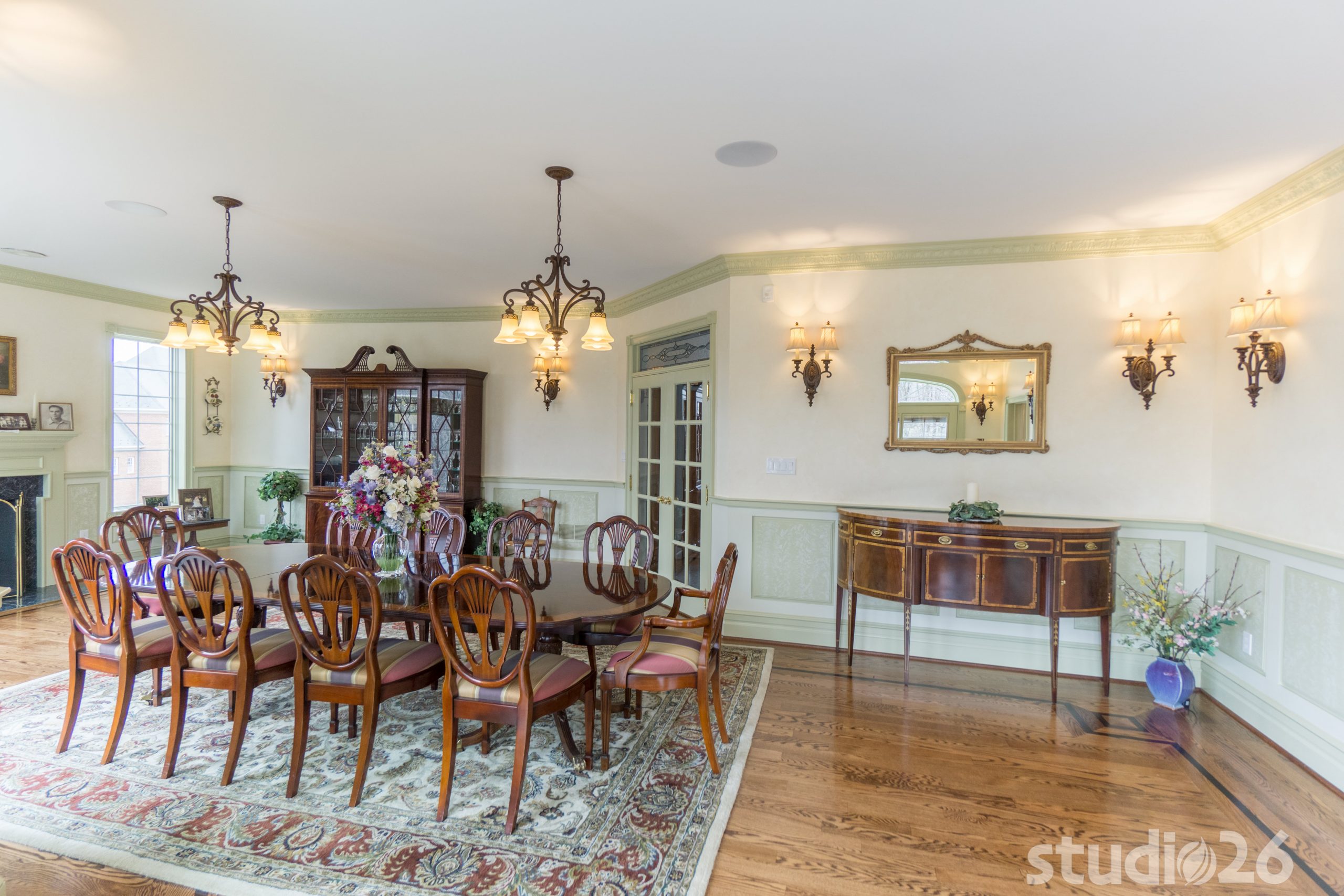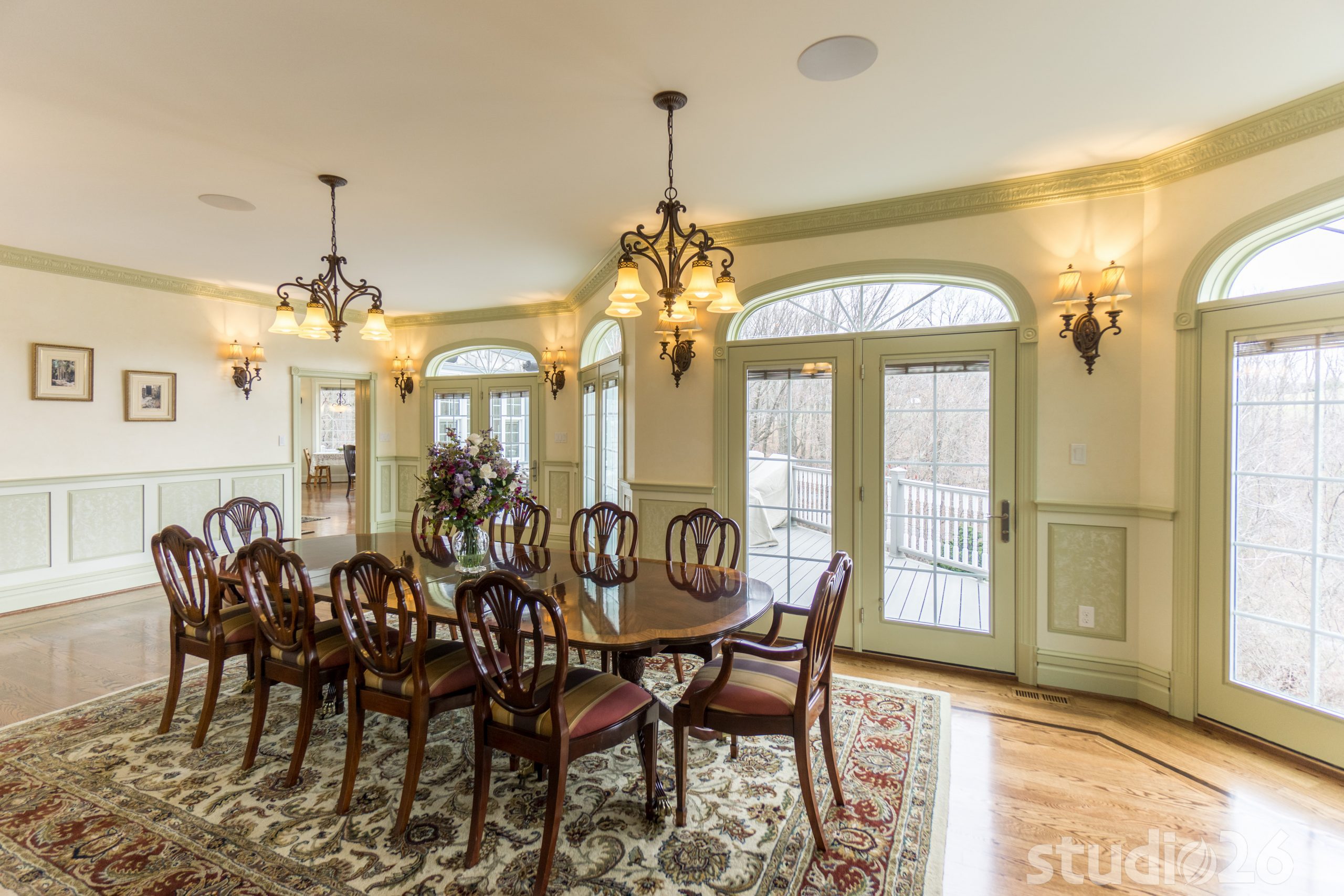 From a spatial planning standpoint, we were able to work through a design that helped to better unify the home as a whole and create two preeminent spaces from four smaller compartmentalized rooms. The former dining room and living room were transformed into one large, stately formal dining room; and the former kitchen and sunroom were transformed into one large, elegant kitchen and breakfast nook area – all much more suitable for their grand family gatherings. In addition to removing critical load-bearing walls to open up each of the spaces, there were additional details that needed to be executed to carry out the design intent. For example, in the former sunroom, our firm had to raise up the floor to meet the existing floor level and demo the existing roof so that we could build new walls and a new roof to match the higher ceiling plane in the existing kitchen to help the newly created space feel more contiguous and spacious. Another notable task was performing the necessary ‘gymnastics’ in ductwork to allow us to relocate the gas cooktop and required ventilation per the new desired kitchen layout.