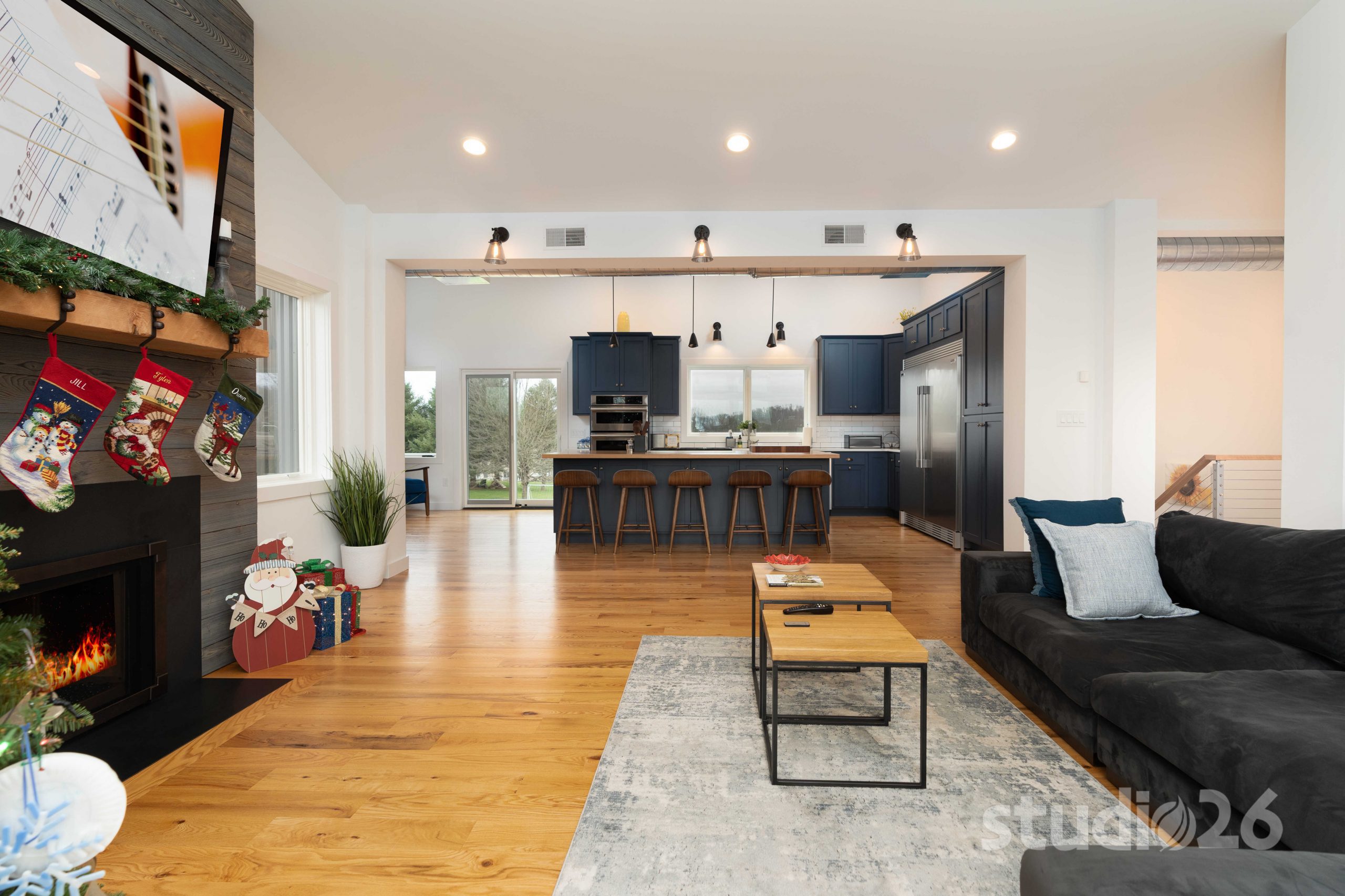 Helping to bring all these unique spaces together into one integrated composition are warm color tones and textures of natural wood and mixed metal work sprinkled throughout the home inside and out. In addition to the Great Room, you can also step outside onto the second floor balcony to experience a beautiful sunset or a magnificent starry night!