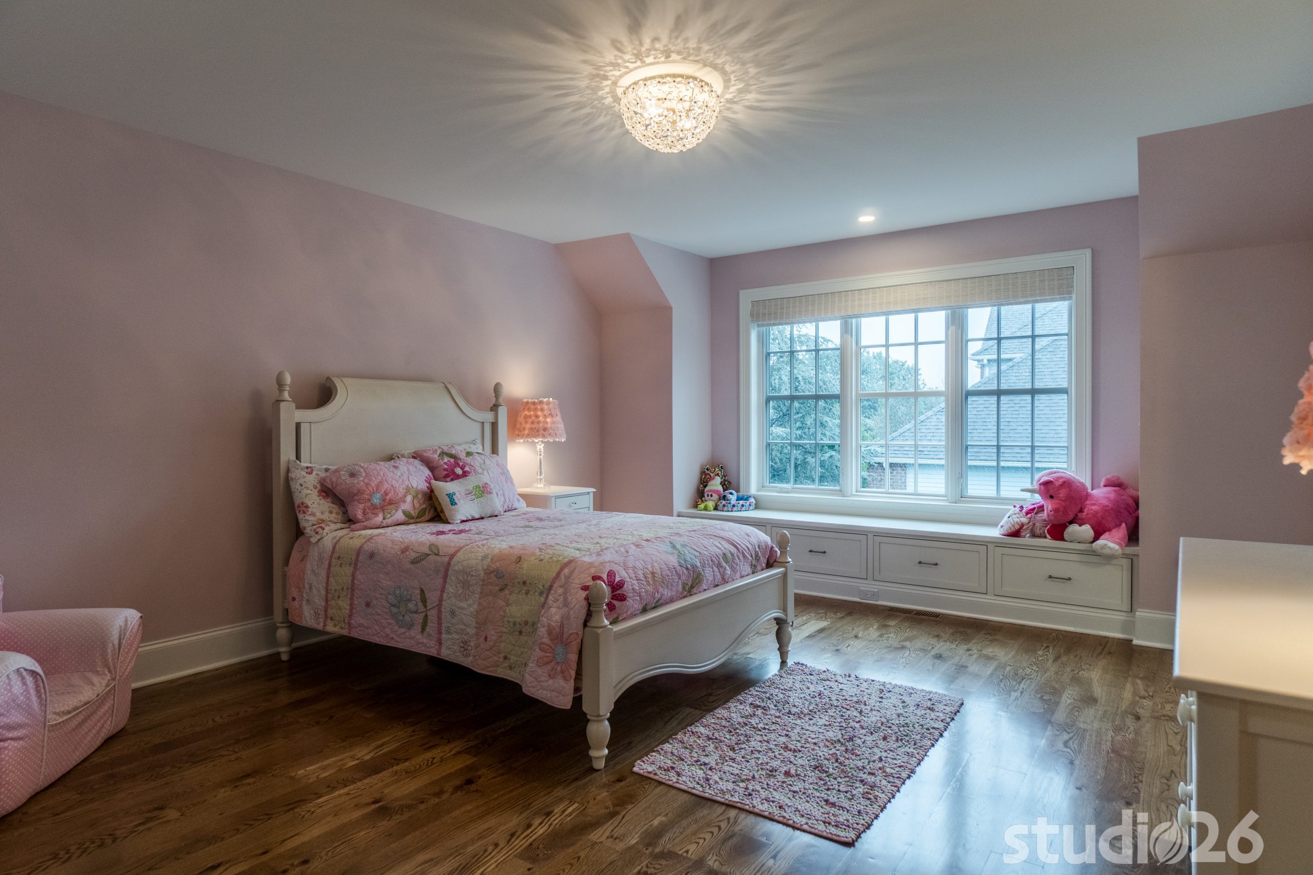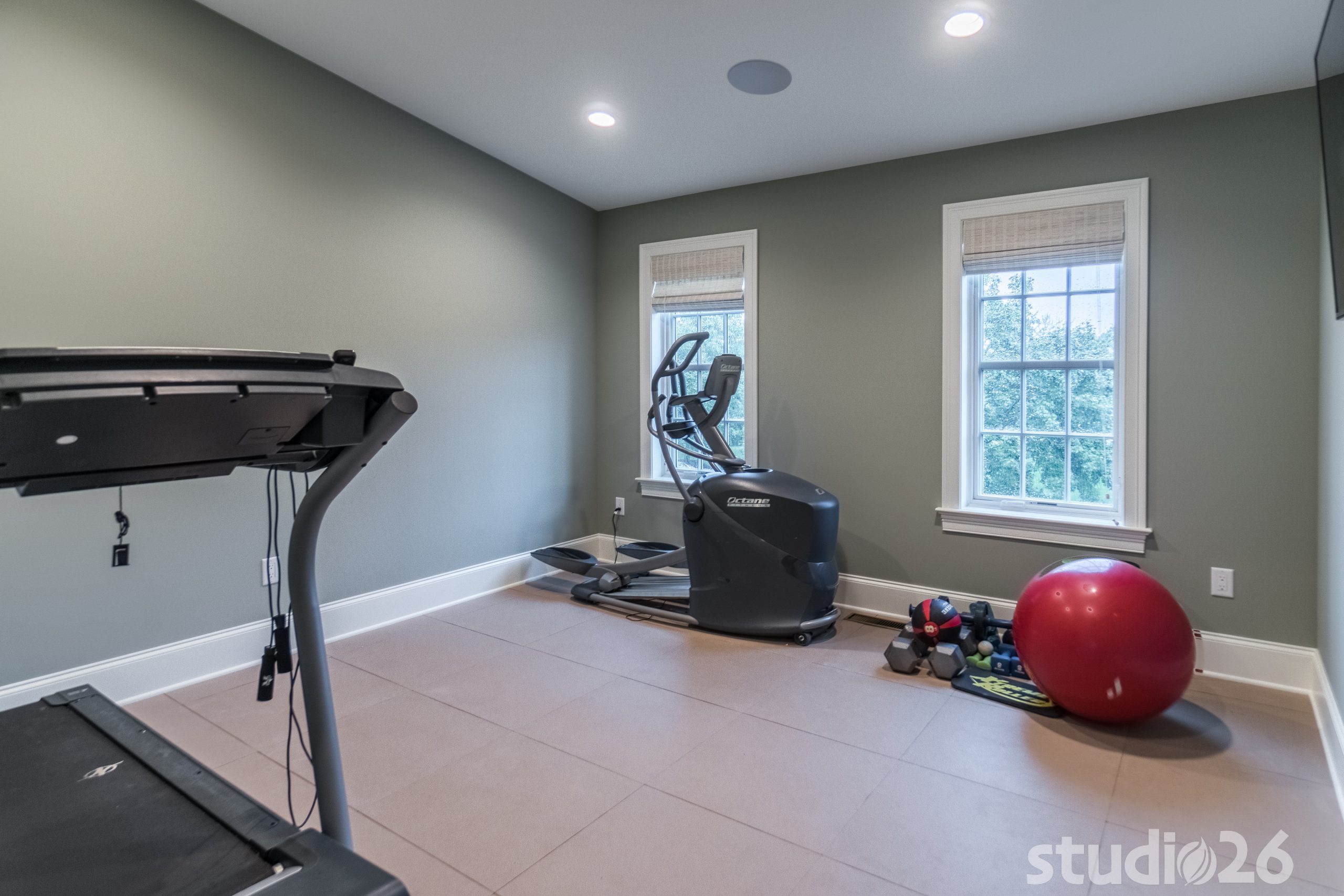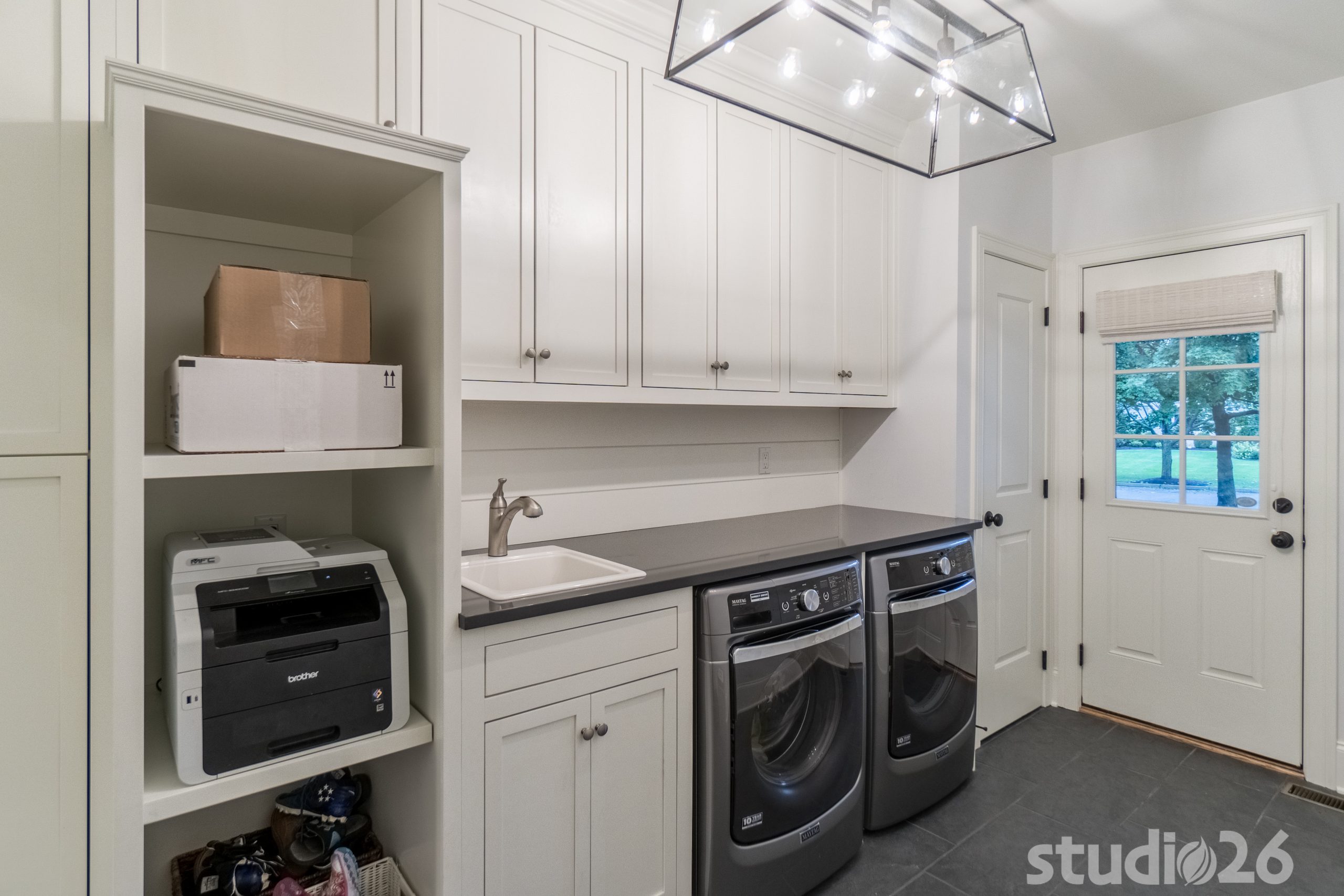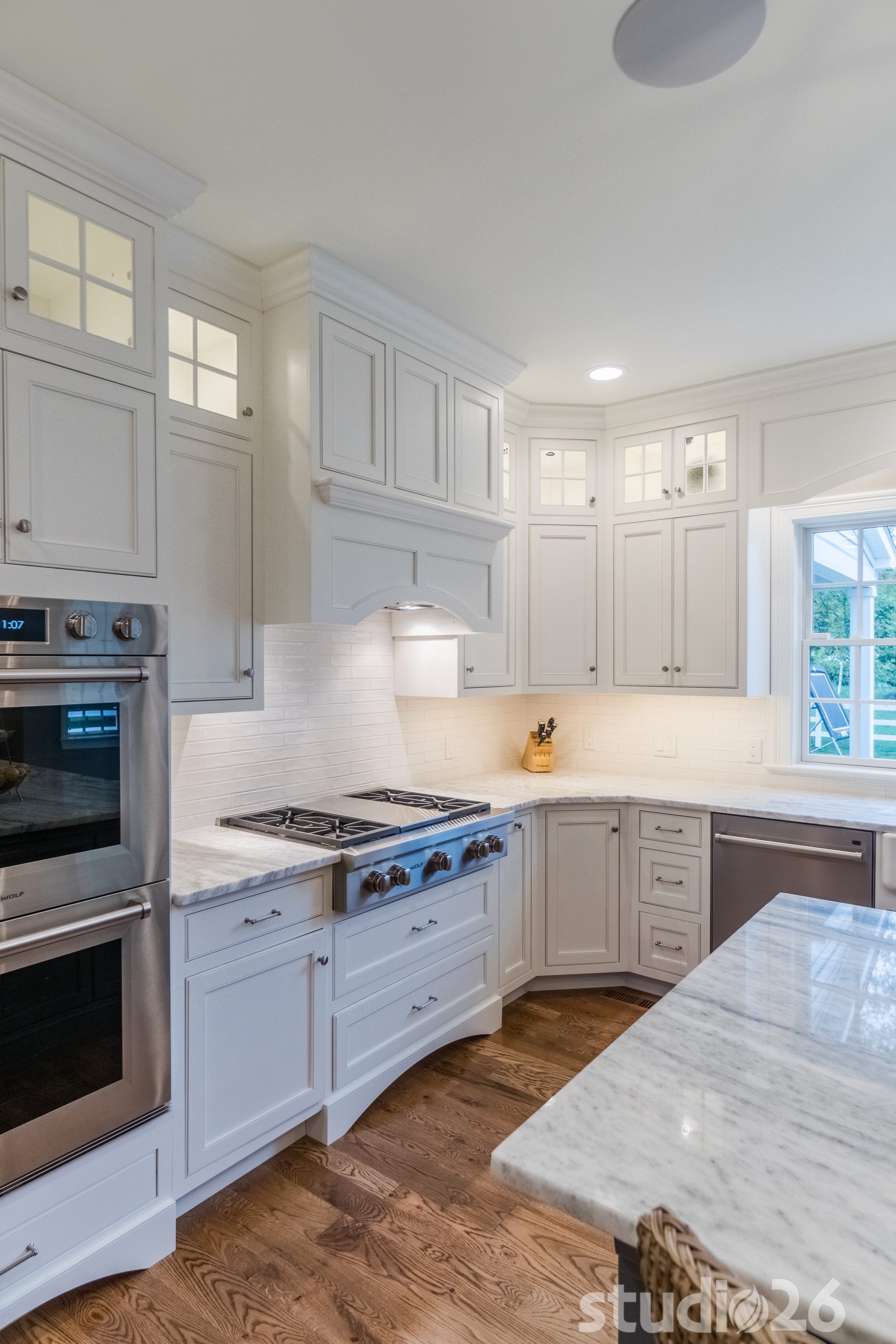While classic – with its real regionally-quarried stone, white fiber cement clapboard siding, and operable black shutters – on the outside, the home offers a very elegant, yet comfortable ambiance for a growing family of six on this inside. Upon entering the home, the two-story grand foyer welcomes its guests with classical elegance highlighted by impressionable details such as purposefully thicker interior walls to help recall hints of yesteryear, genuine recessed panel wainscoting, understated colonial trim and crown molding details, and site-finished random-width white oak floors throughout.