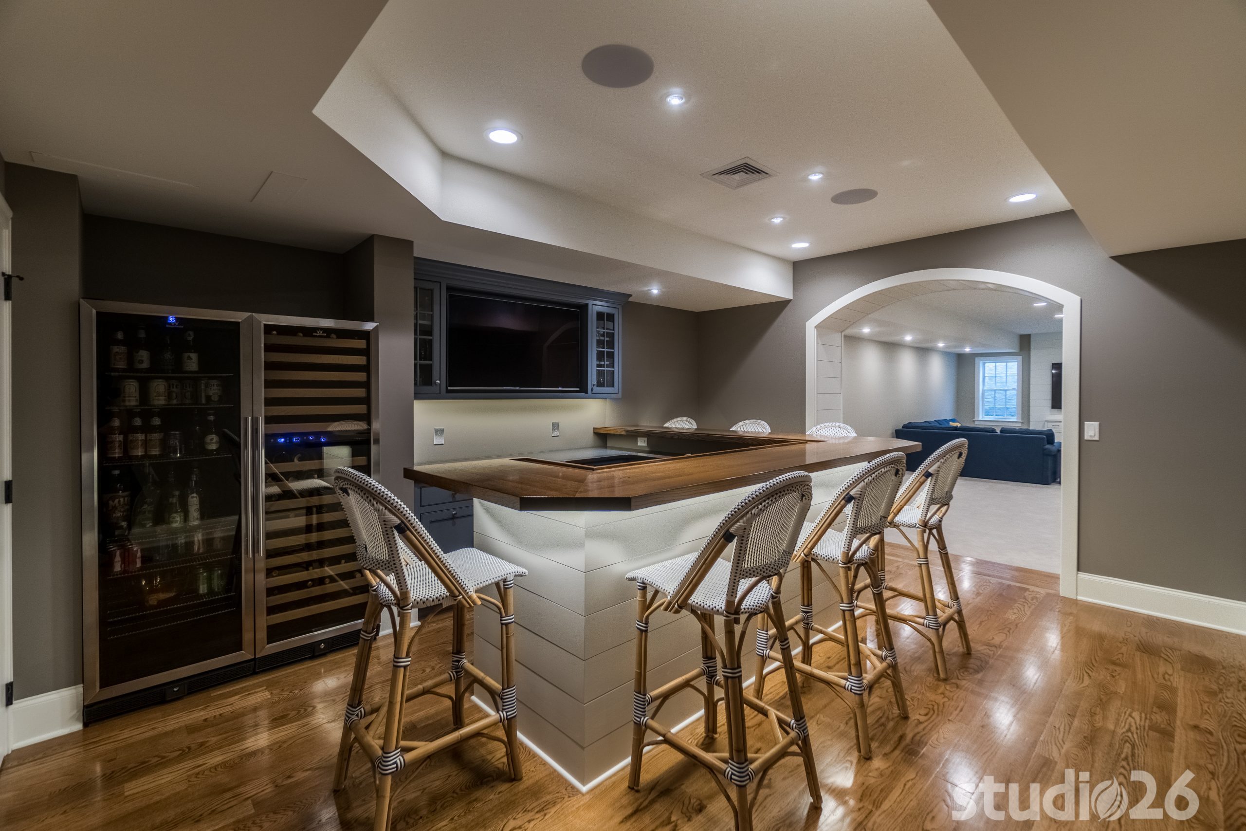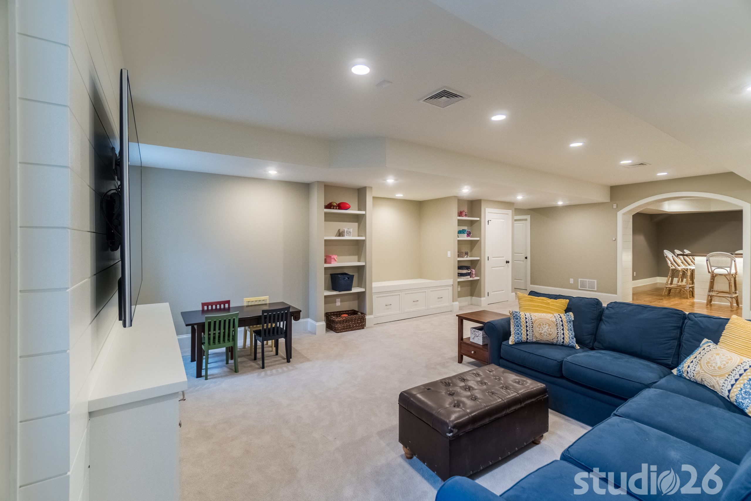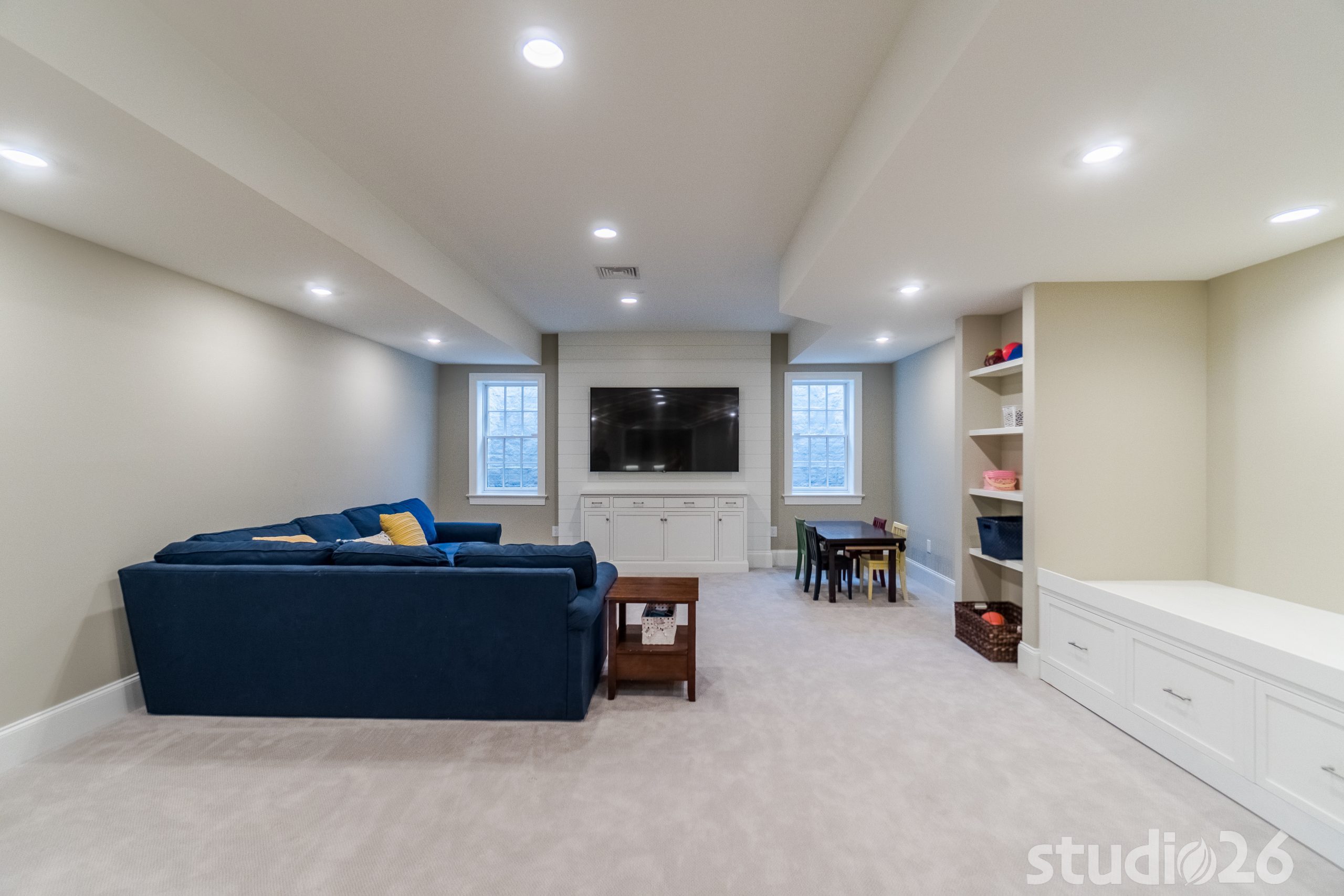 In the lower level, nearly the entire basement was finished and detailed with the same care, craftsmanship, and charm as the upper two floors, including an ample amount of unexpected, but much appreciated natural light and harmonious shiplap details. In addition to the home’s fifth full bathroom and sixth bedroom used primarily as a guest suite, the basement provides this homeowner with an elegant bar area with tailored cabinetry and custom white oak counter, and an expansive open play area with custom built-ins perfect for family TV nights. And the memories are just beginning!