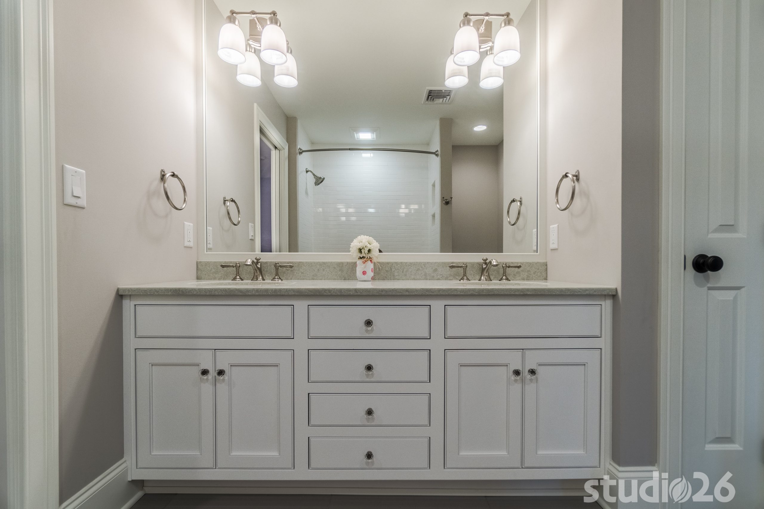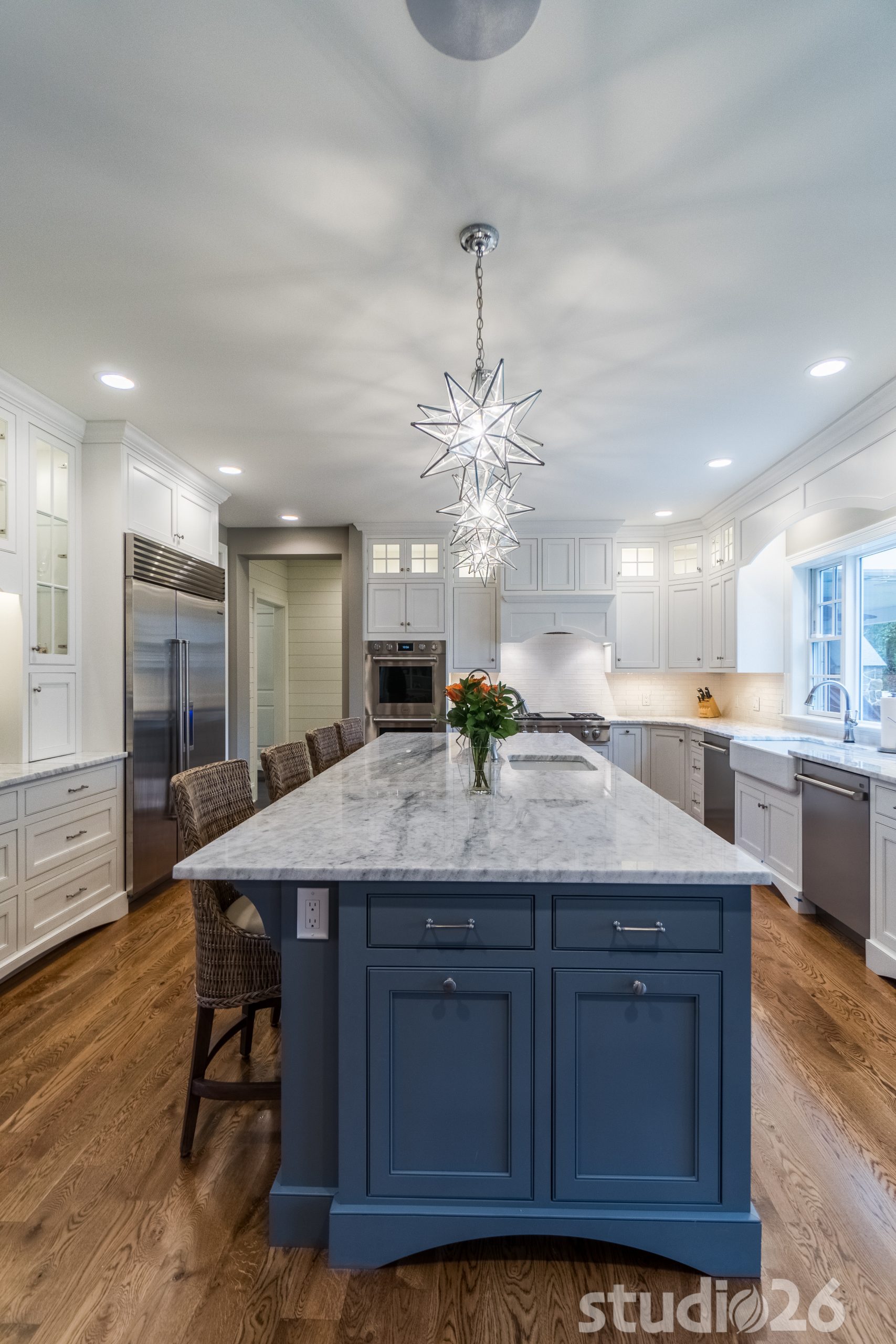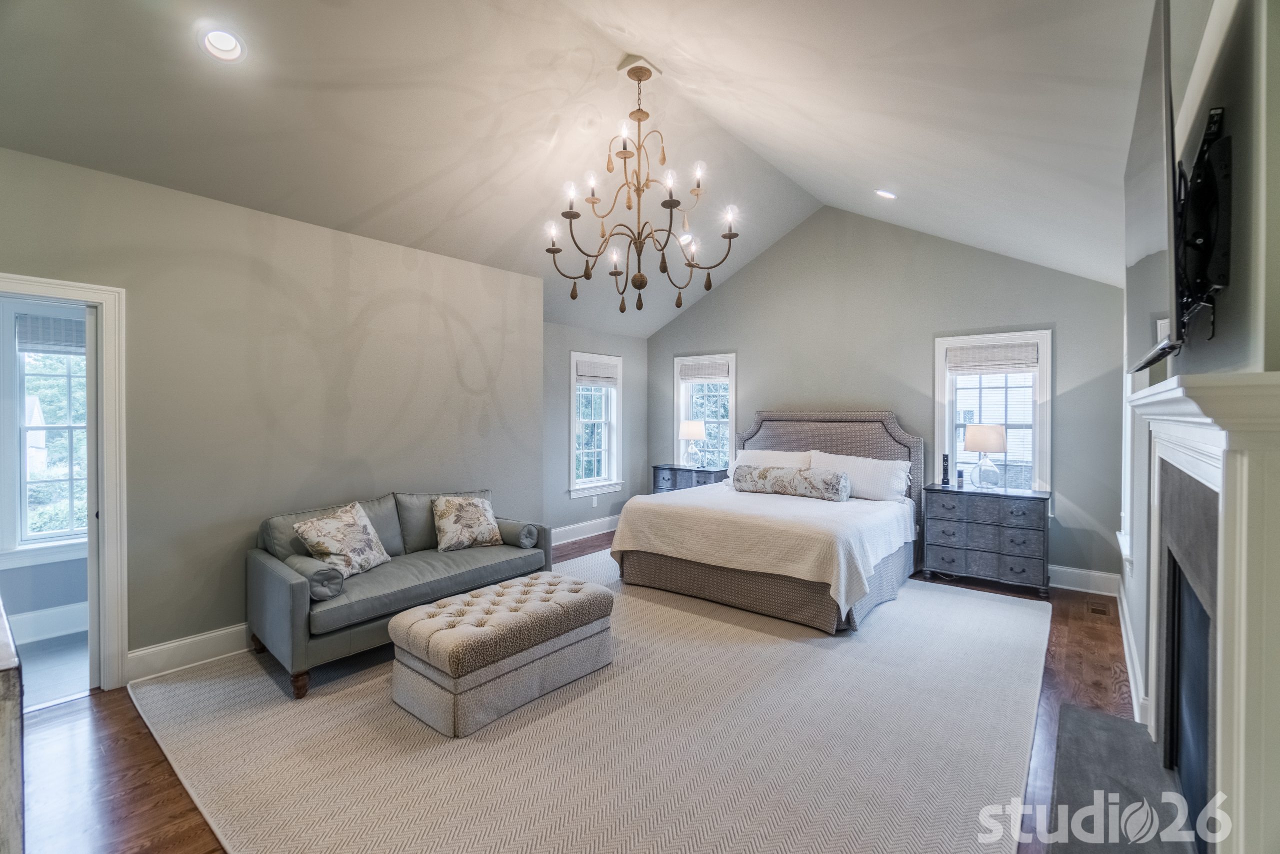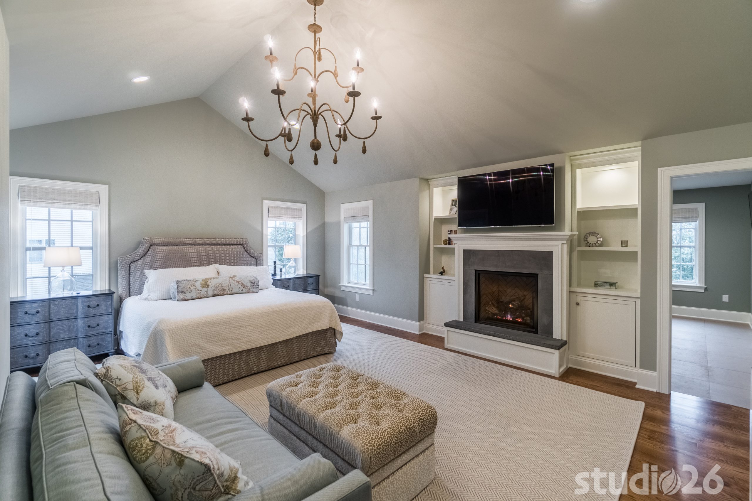 Programmatically, our client was looking to capture a few of the cherished elements of their former home while incorporating several new and larger components that would help them to better entertain their plentiful extended family and friends throughout the holidays and special occasions. To help deliver on this goal, it was important for us to incorporate an expansive covered front porch with its black standing seam metal roof as well as an extensive rear covered porch area that housed a custom outdoor kitchen, a wood-burning stone fireplace, and toasty infrared heaters recessed into the bead board ceiling perfect to help expand the entertaining seasons throughout the year.