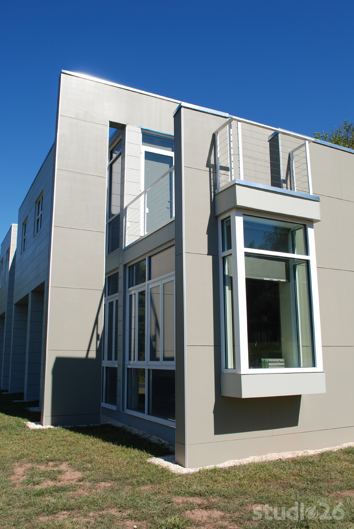 Fiber Cement Siding Panels, Metal Handrails with CableRail