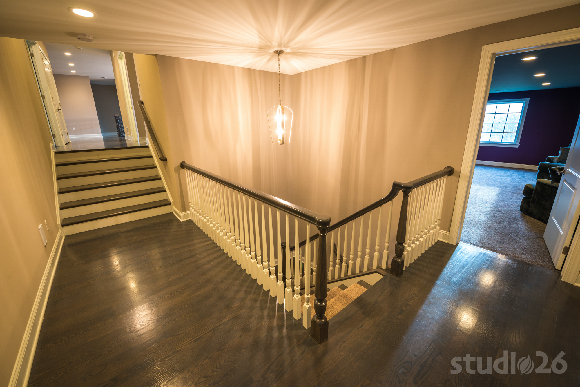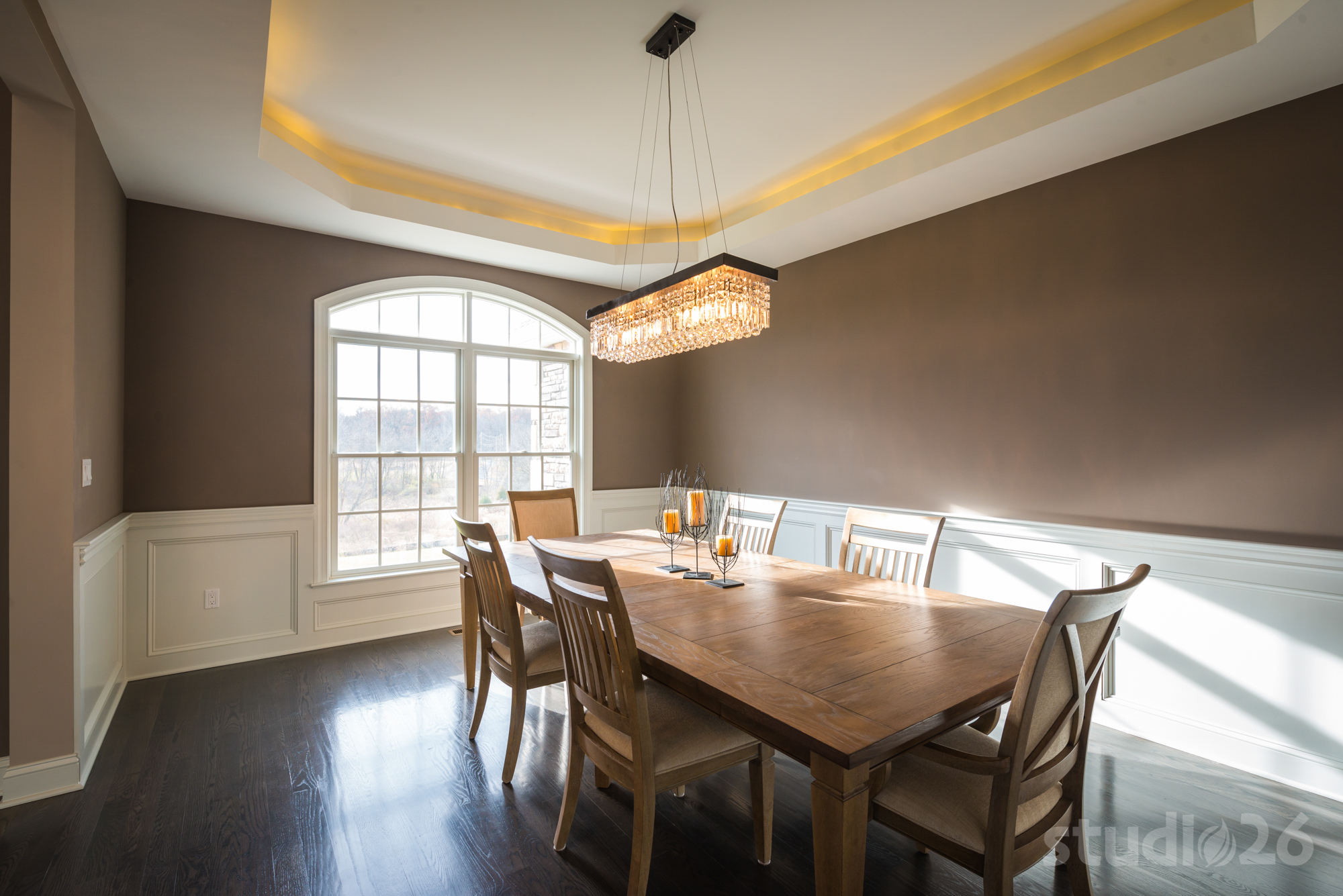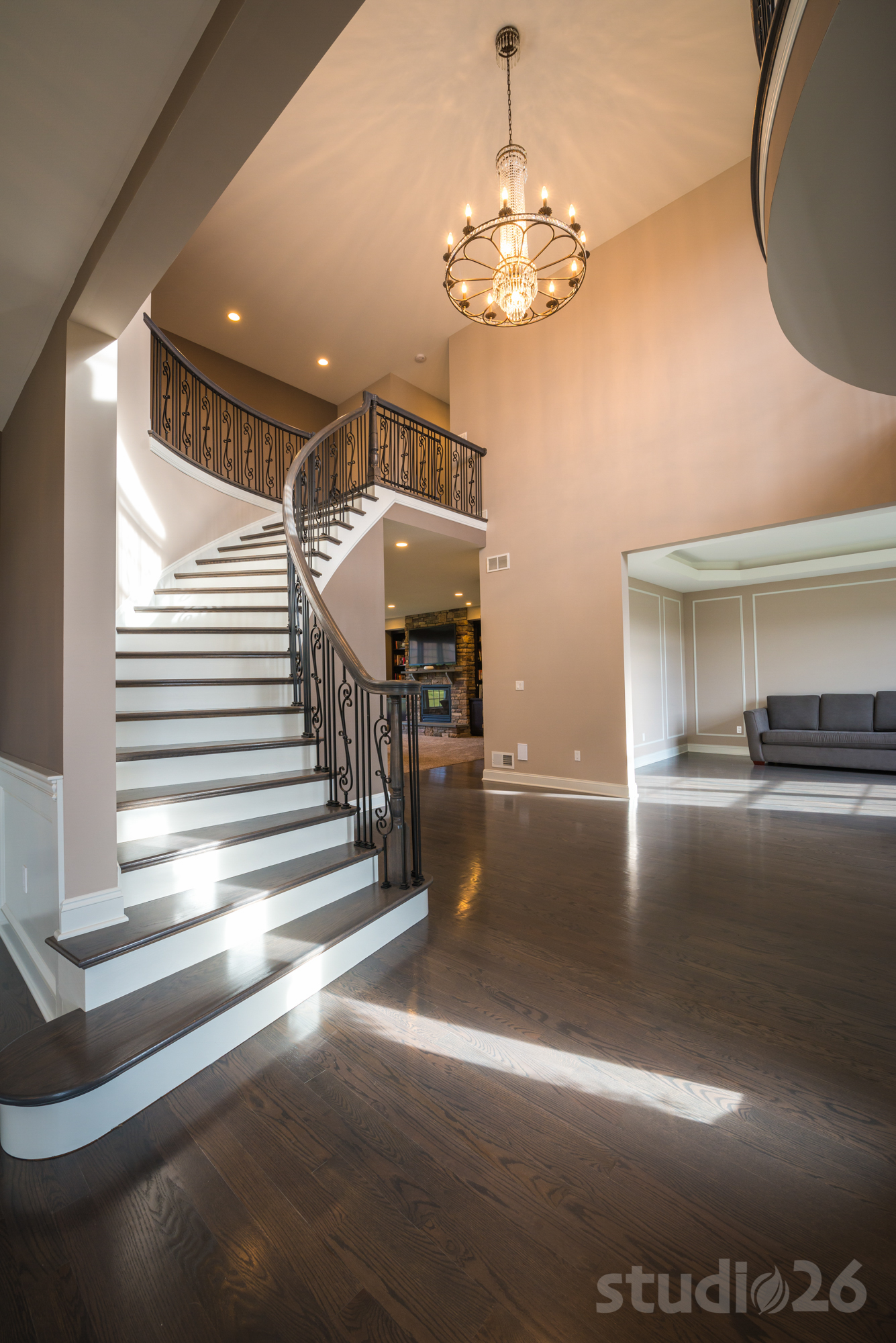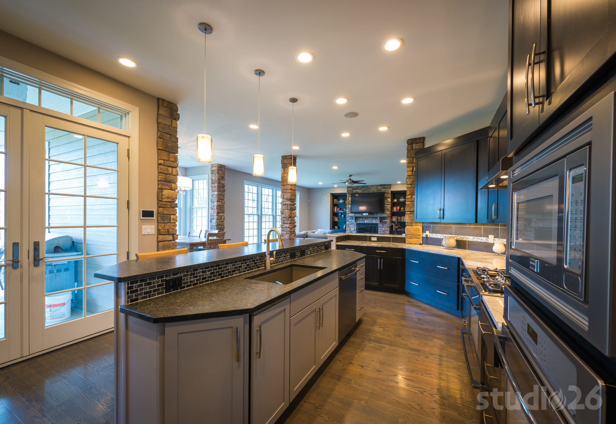 Architecturally, our client wanted to convey a more traditional, European exterior as well as into the grand foyer, dining room, and living room at the front of the home. And as you progress into the more private parts of the home, the aesthetic begins to take on a more modern style playing off the owners’ more youthful side.
