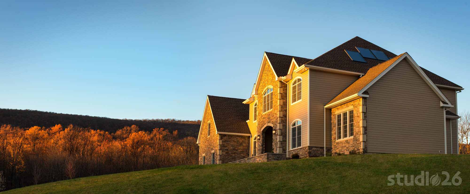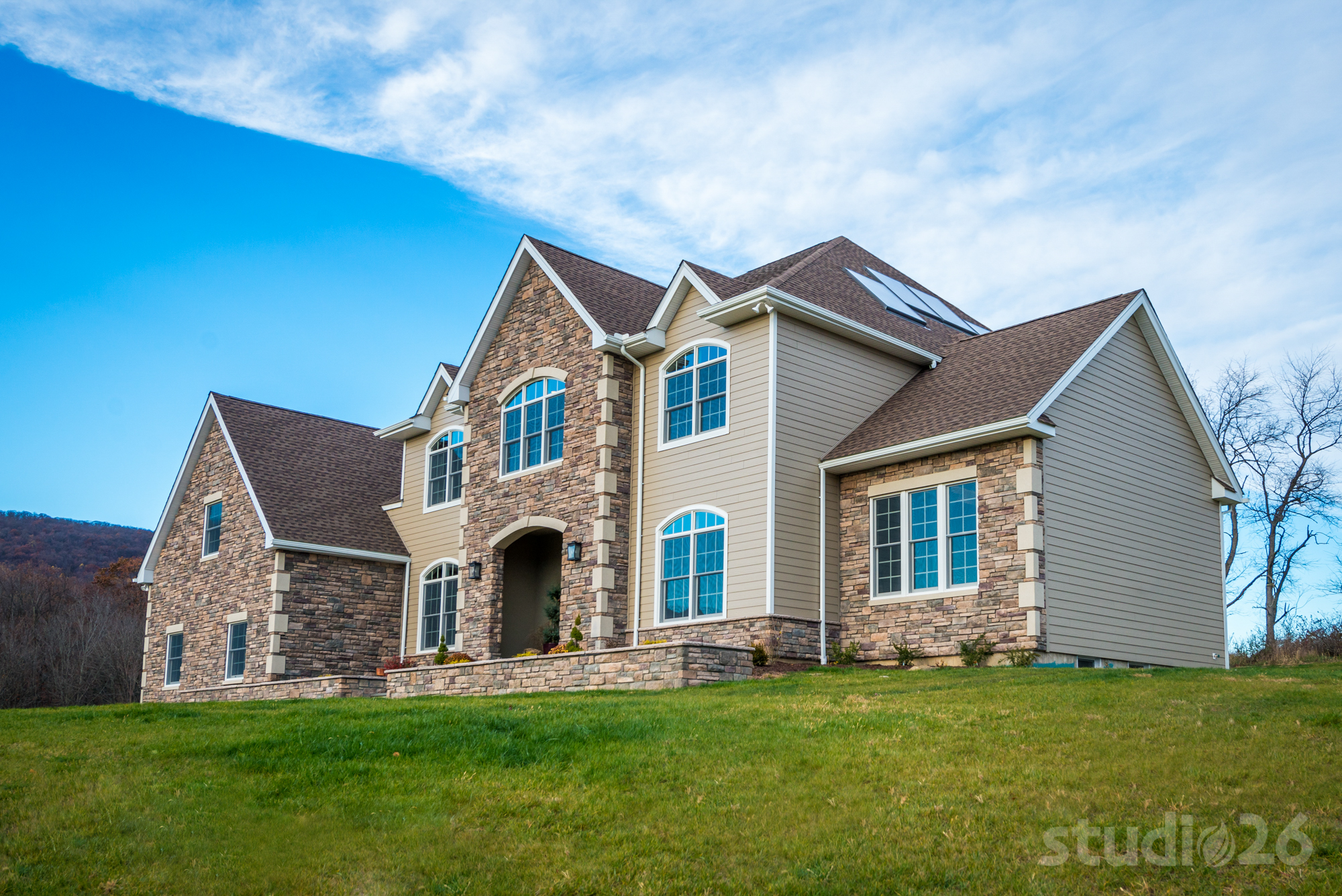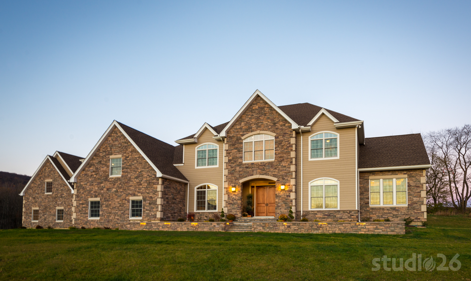 Similar to some of our custom home projects, this process began with a collaborative and exhaustive search for a suitable 10+ acre countryside parcel on which to build a dream estate. After several weeks perusing options together, our client selected a property that offered a private, yet picturesque backdrop complete with expansive open space and nearby mountain views. To help maintain privacy as well as convey an ‘escalated’ sense of arrival, the driveway was designed from the public street to meander along a nearly 1,000’ long driveway traversing an existing tree-lined creek at three separate crossings and just beyond, ultimately reveal their impressive home resting on its elevated perch.