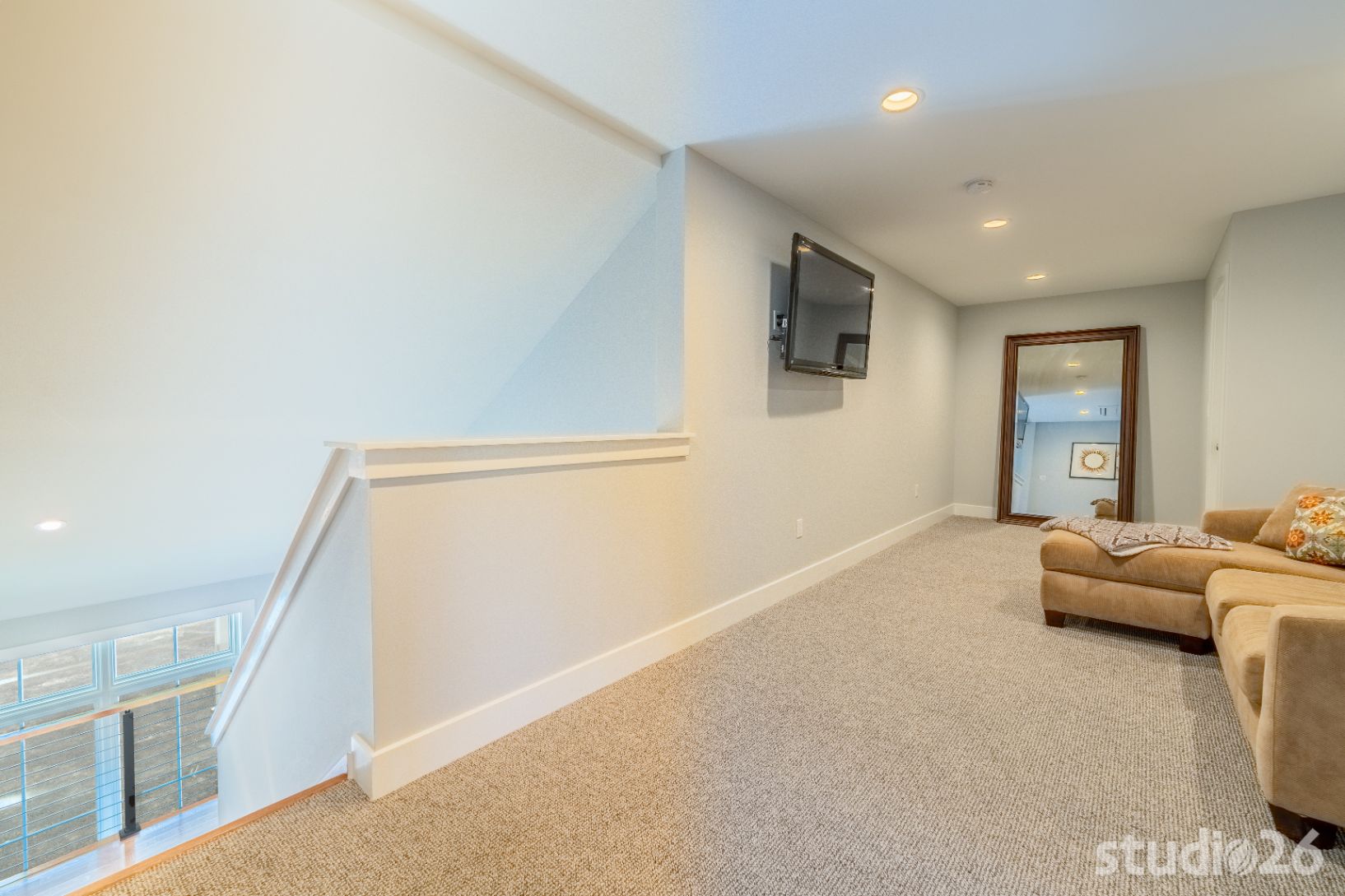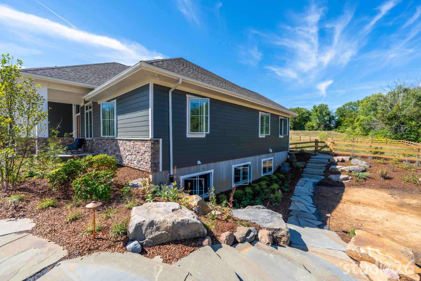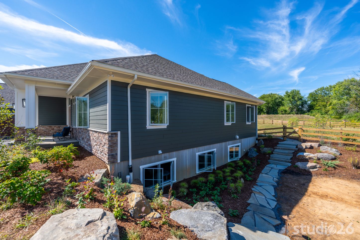 When their kids come back to visit, it is important to have dedicated space for each of them to relax and enjoy their own distinct restful areas. As a result, we designed two complementing bedroom suites joined by a common area atop the second floor open riser staircase. In the lower level, the home and site were designed to allow for a notable amount of natural light to flow in. In addition to providing a more enjoyable experience overall, the ‘English’ basement allows for an additional suite perfect for out-of-town guests. And since a treasure dear to owners’ hearts is raising adorable bunnies, we provided a dedicated Bunny Room that was specifically designed to withstand the rigors of potentially very destructive animals who roam and enjoy open playful spaces. Rounding out the lower level is a secondary family room and a prized office with an adjoined cigar lounge complete with its own ventilation system.