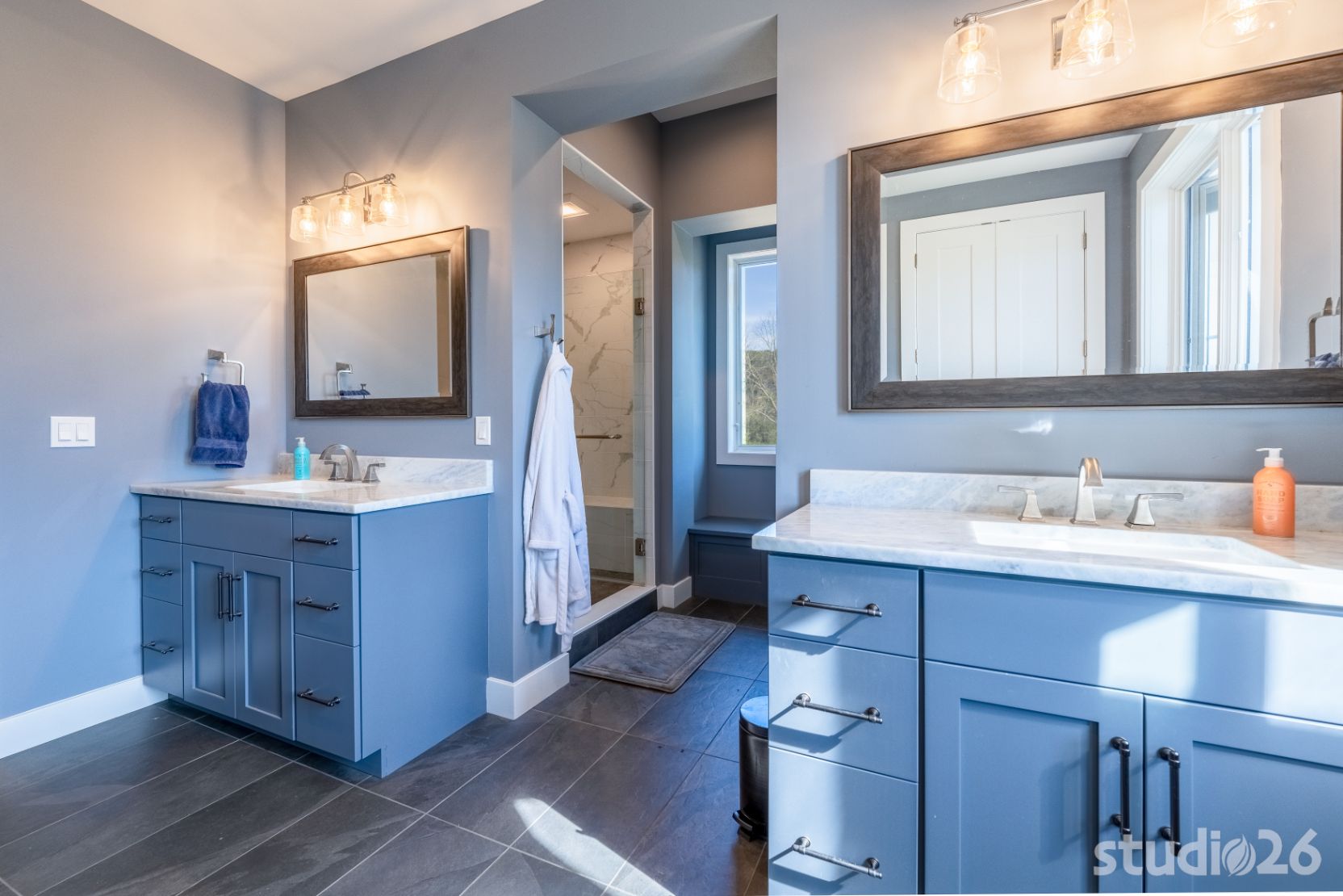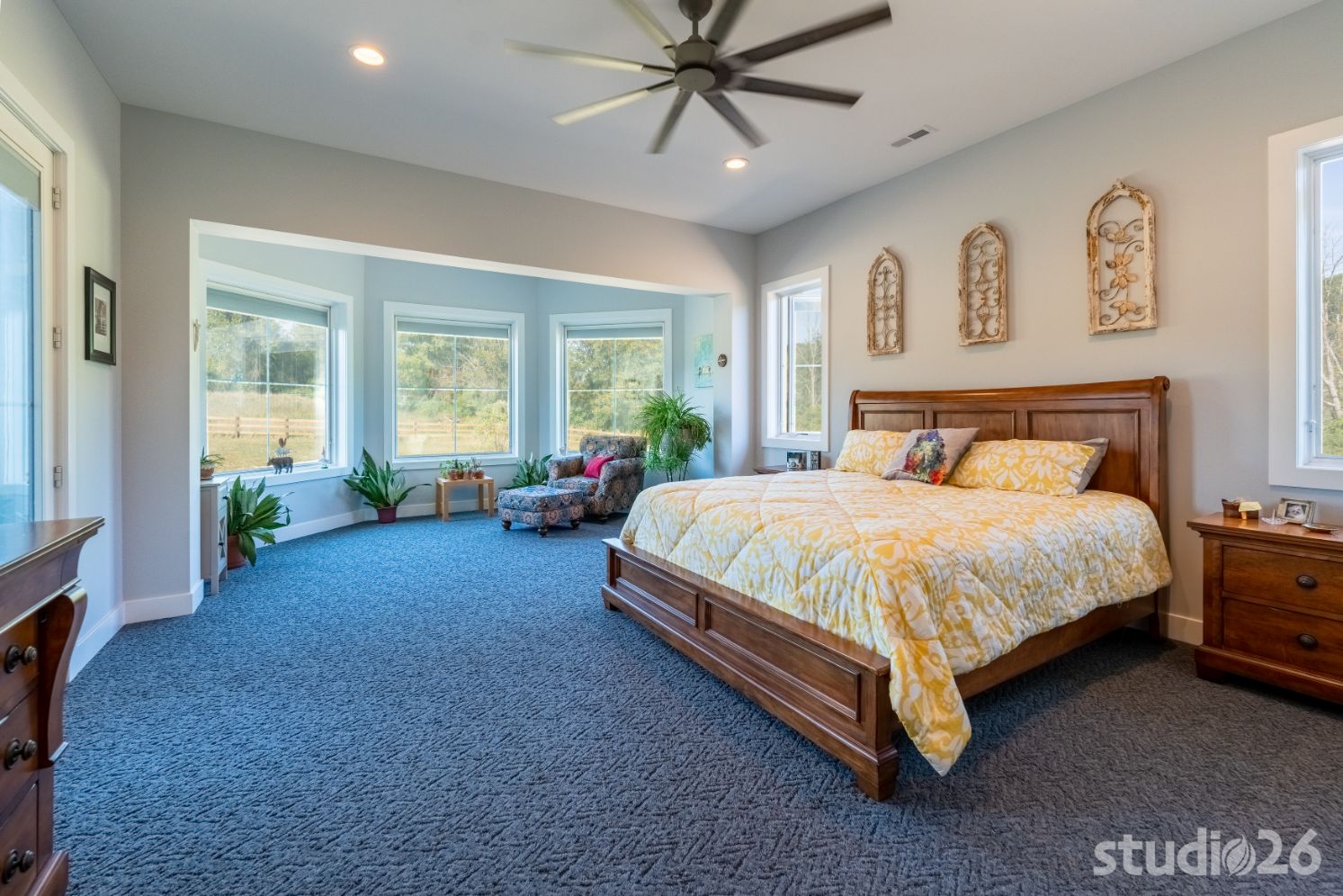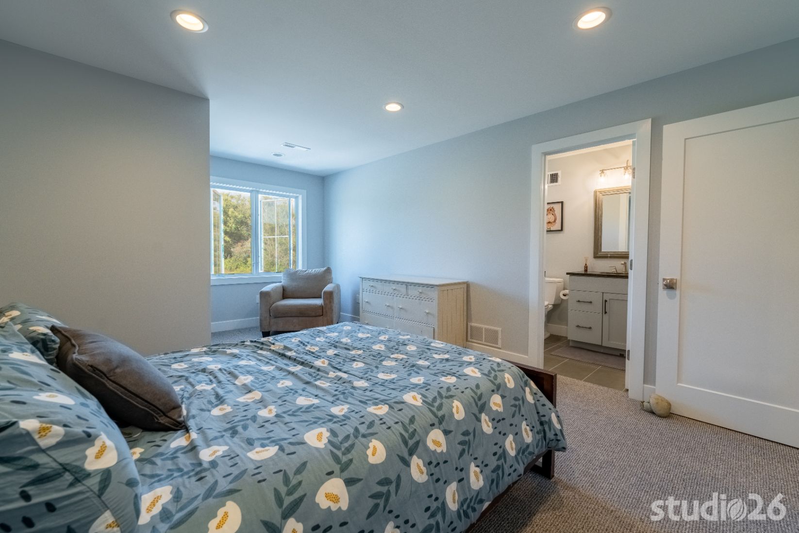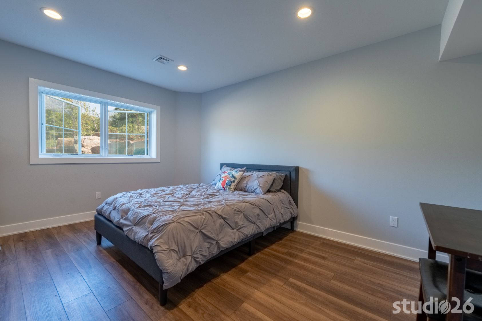 When their kids come back to visit, it is important to have dedicated space for each of them to relax and enjoy their own distinct restful areas. As a result, we designed two complementing bedroom suites joined by a common area atop the second floor open riser staircase. In the lower level, the home and site were designed to allow for a notable amount of natural light to flow in. In addition to providing a more enjoyable experience overall, the ‘English’ basement allows for an additional suite perfect for out-of-town guests. And since a treasure dear to owners’ hearts is raising adorable bunnies, we provided a dedicated Bunny Room that was specifically designed to withstand the rigors of potentially very destructive animals who roam and enjoy open playful spaces. Rounding out the lower level is a secondary family room and a prized office with an adjoined cigar lounge complete with its own ventilation system.