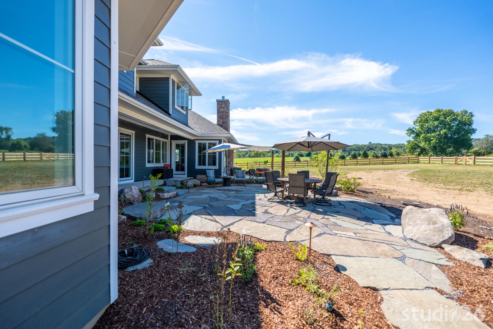Experience top shelf first floor living amidst a tranquil rear yard landscape out in the country! Our treasured clients came to us to help them design and craft a high-performance custom home that allowed for a genuinely comfortable, open-concept living experience – inside and outside – all on one floor as they begin to downsize and simplify their lives.